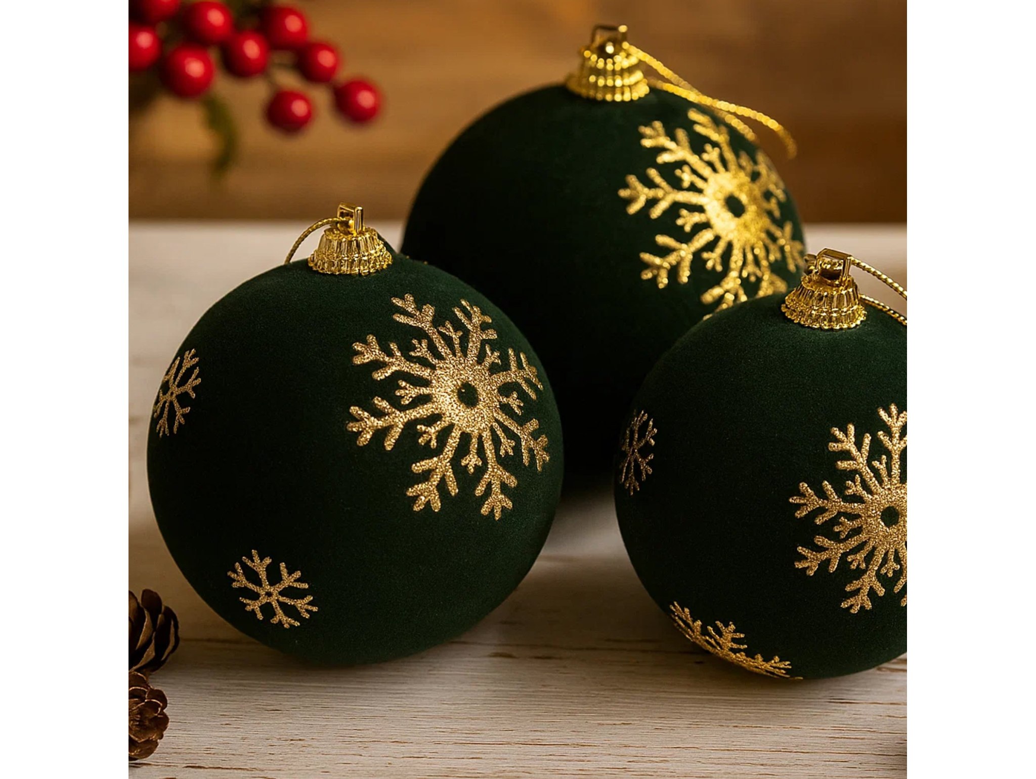 Bo łączą w sobie tradycję i elegancję – ich aksamitne wykończenie sprawia, że wyglądają jak ozdoby z luksusowych katalogów świątecznych. Są bezpieczne dla dzieci i zwierząt, ponieważ nie tłuką się jak klasyczne szklane bombki. Świetnie komponują się z innymi dekoracjami, tworząc harmonijny, ciepły nastrój świąt.