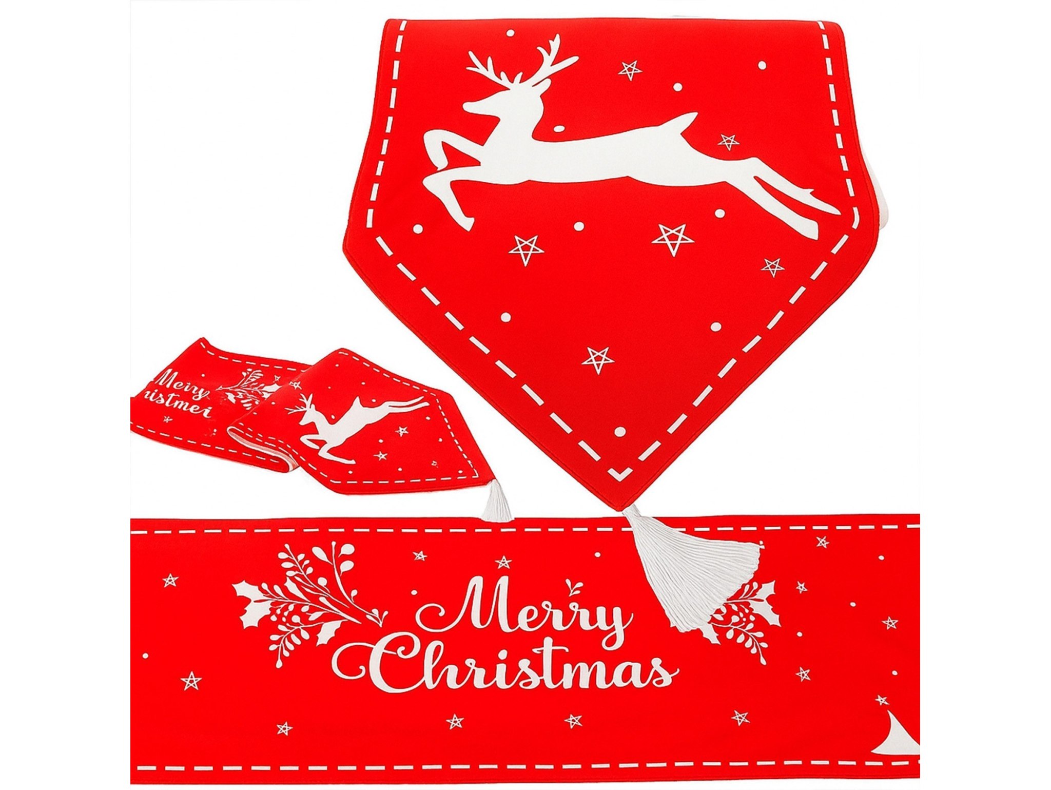 Bieżnik świąteczny obrus na stół wigilijny na święta 34x205 boże narodzenie czerwony z reniferem
