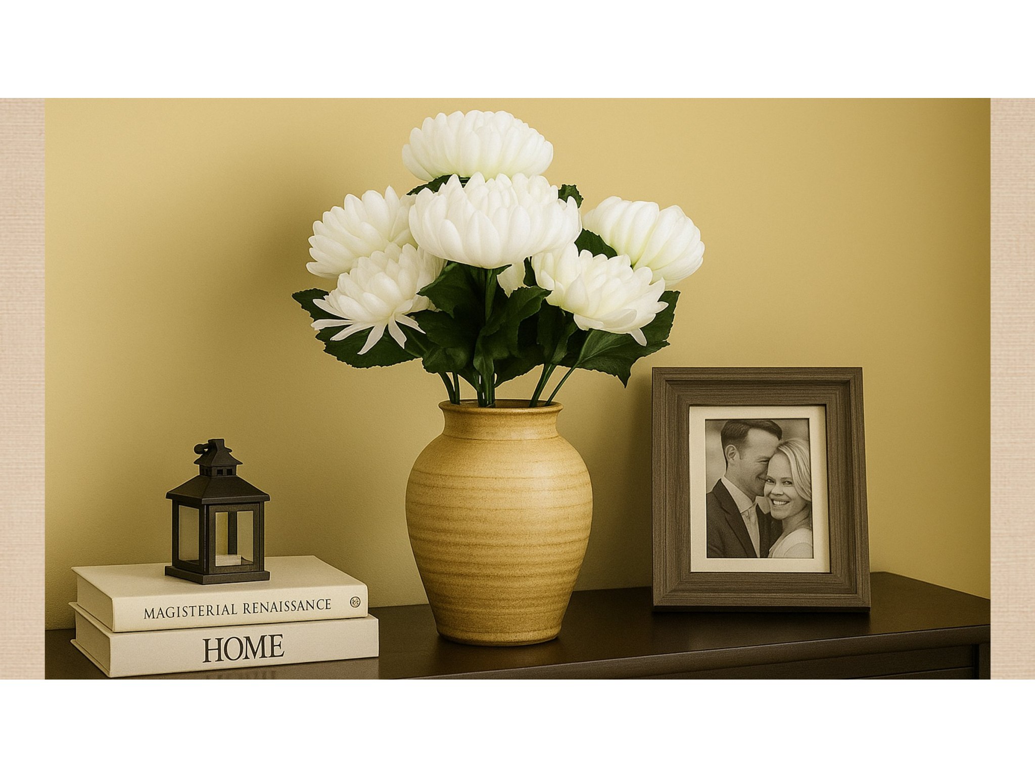 Co ważne – sztuczne chryzantemy to także doskonały wybór na Wszystkich Świętych. 🌿🌹 Dzięki swojej trwałości i odporności na pogodę stanowią idealną ozdobę nagrobków, zachowując świeżość i elegancję przez długi czas, niezależnie od warunków atmosferycznych.