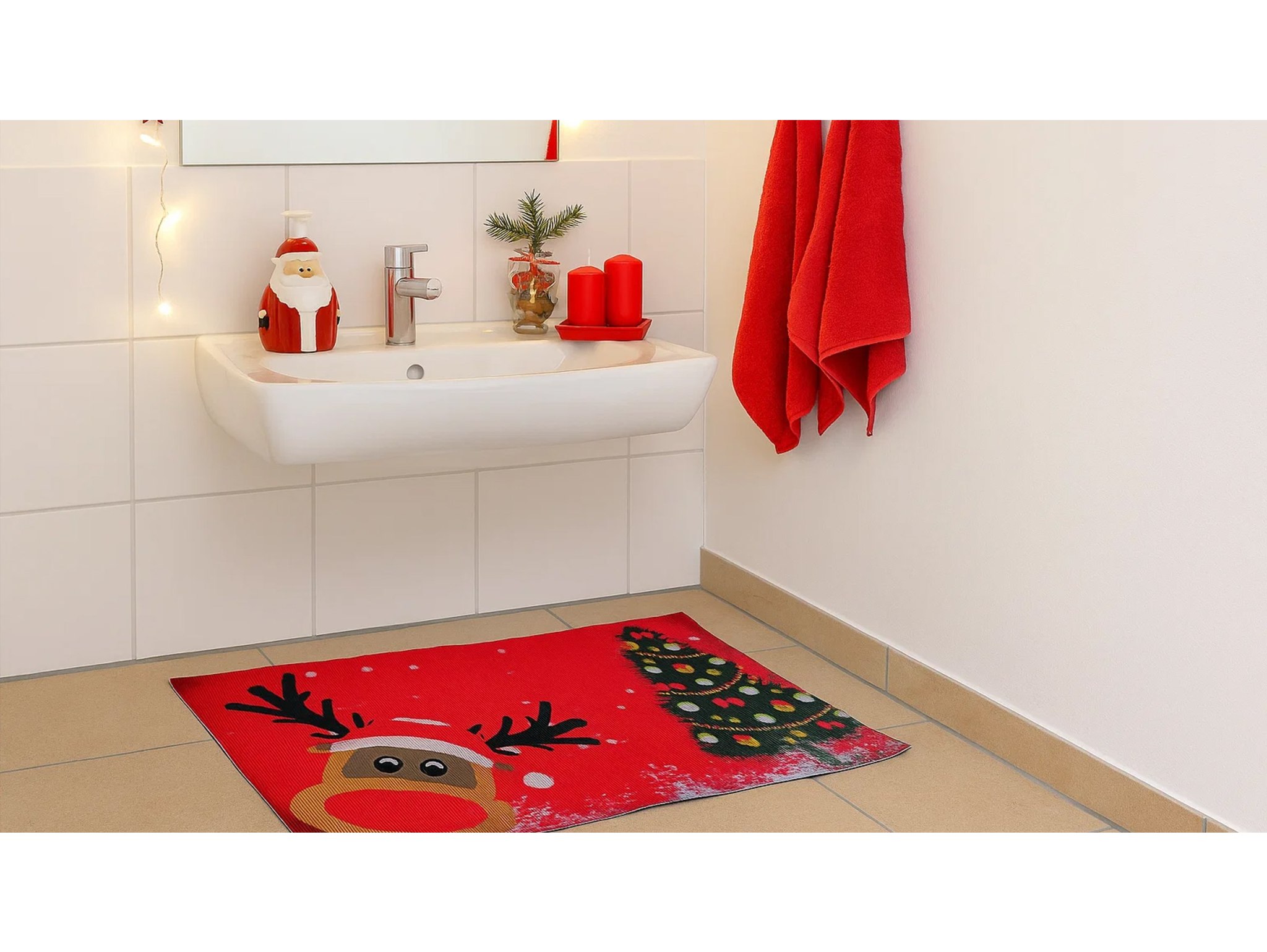 Bez względu na to, czy stanie przy wannie, pod prysznicem czy przy umywalce, mata zapewnia bezpieczeństwo dzięki antypoślizgowej gumie pod spodem, chroniącej przed poślizgnięciem. Jej świąteczny motyw wnosi ciepło i magię Bożego Narodzenia do codziennych chwil, tworząc przytulną i nastrojową atmosferę.