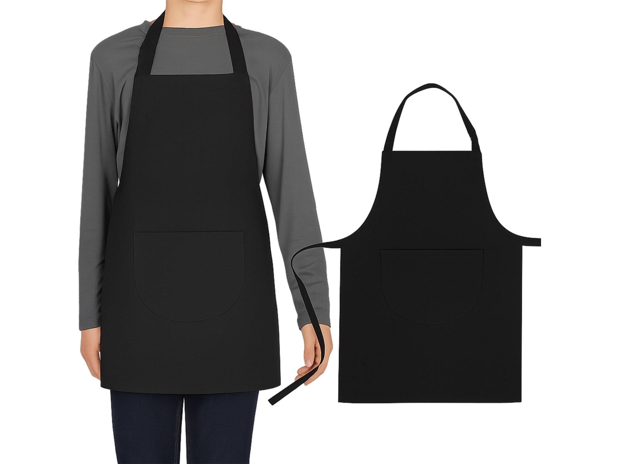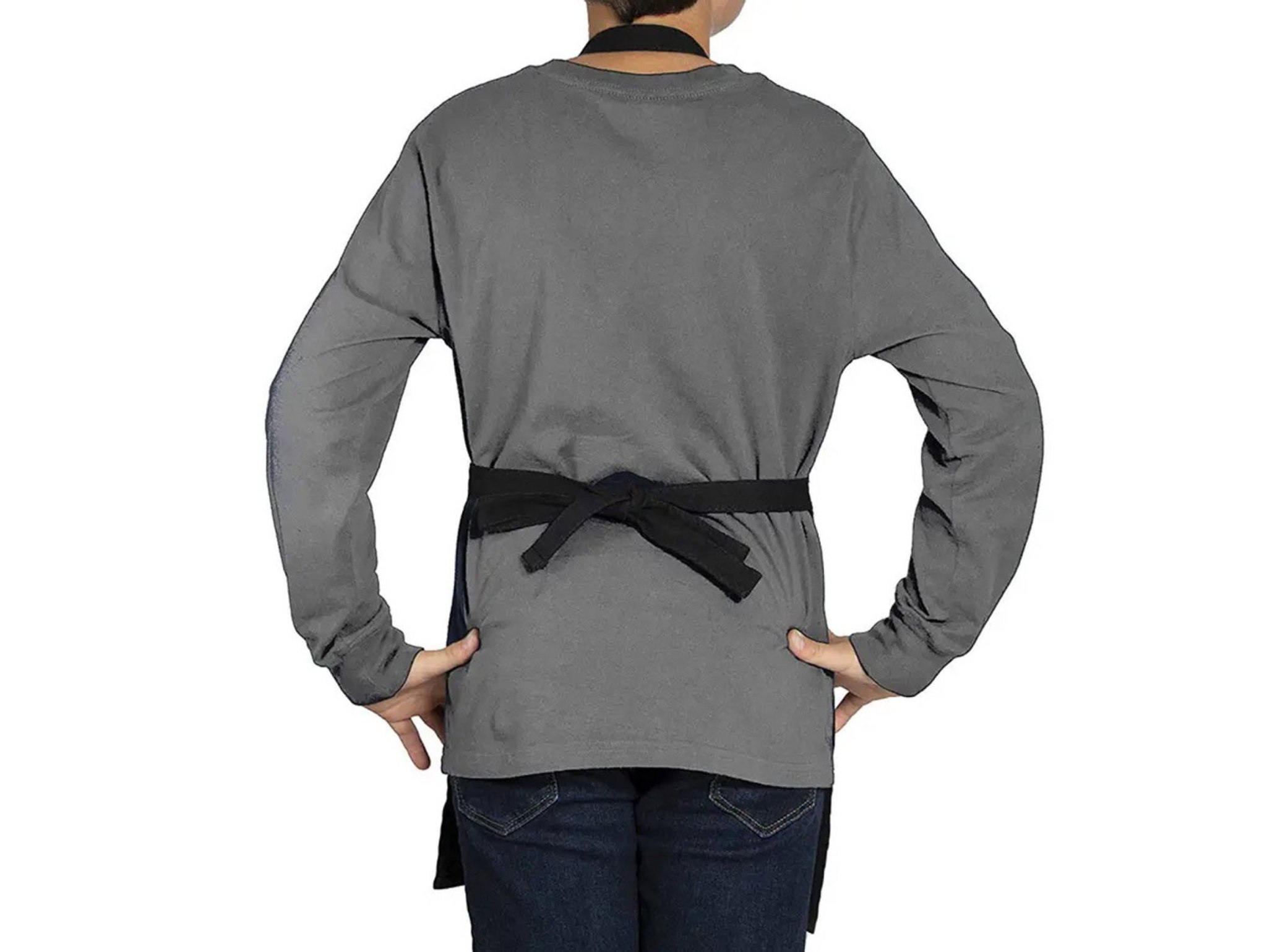 ✅ Wygodne zakładanie – fartuch nakładany przez głowę, wiązany trokami z tyłu.