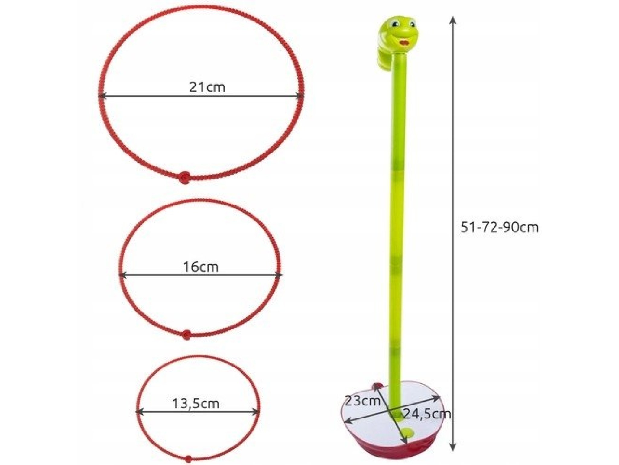✅ Trzy rozmiary obręczy – różny poziom trudności dopasowany do wieku i umiejętności graczy
