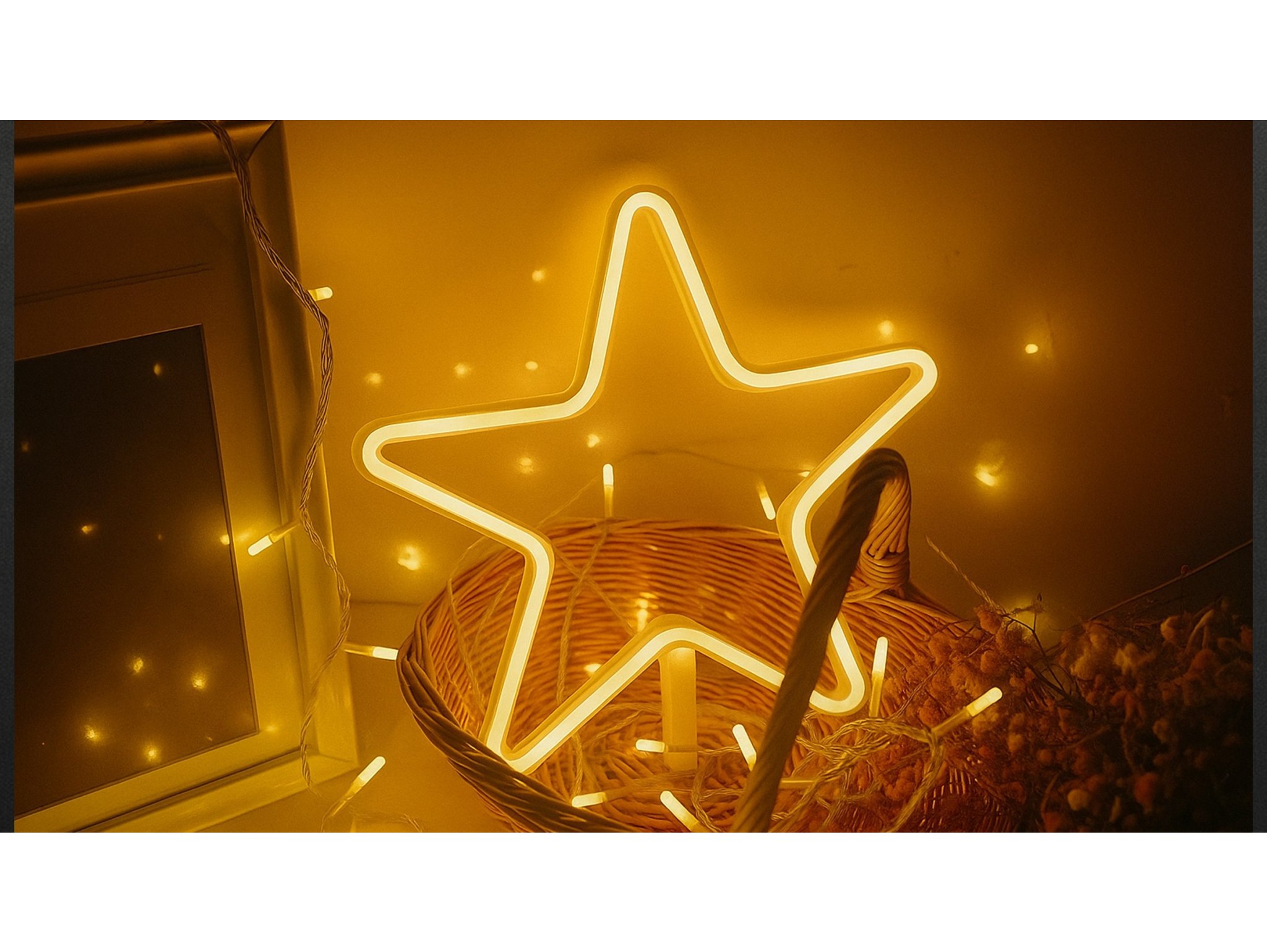 Gwiazdka LED to więcej niż tylko lampka – to symbol świąt i rodzinnego ciepła. 💫 Dzięki efektowi neonowego światła tworzy przyjemną atmosferę, idealną do wieczornego relaksu lub spotkań w gronie najbliższych. Jej uniwersalność sprawia, że możesz ją wykorzystać na wiele sposobów – jako czubek choinki, dekorację stołu, tła do zdjęć lub ozdobę witryny sklepowej.