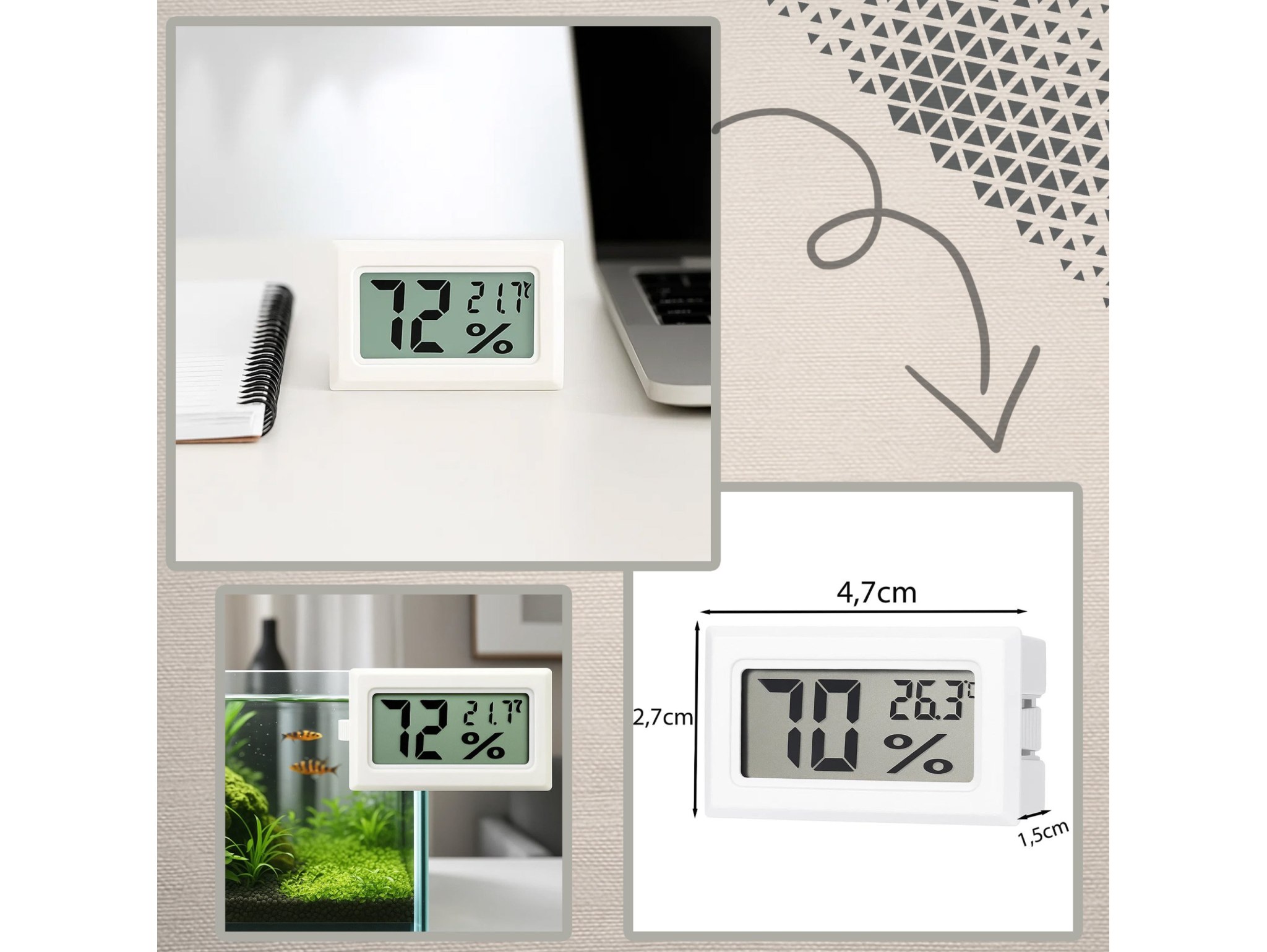 To precyzyjne i wszechstronne urządzenie, które sprawdzi się w różnych sytuacjach – od kontroli warunków w terrariach i akwariach, po monitorowanie wilgotności w humidorach, futerałach na instrumenty czy pomieszczeniach. Dzięki szybkiemu pomiarowi oraz dużemu i czytelnemu ekranowi korzystanie z niego jest niezwykle wygodne.