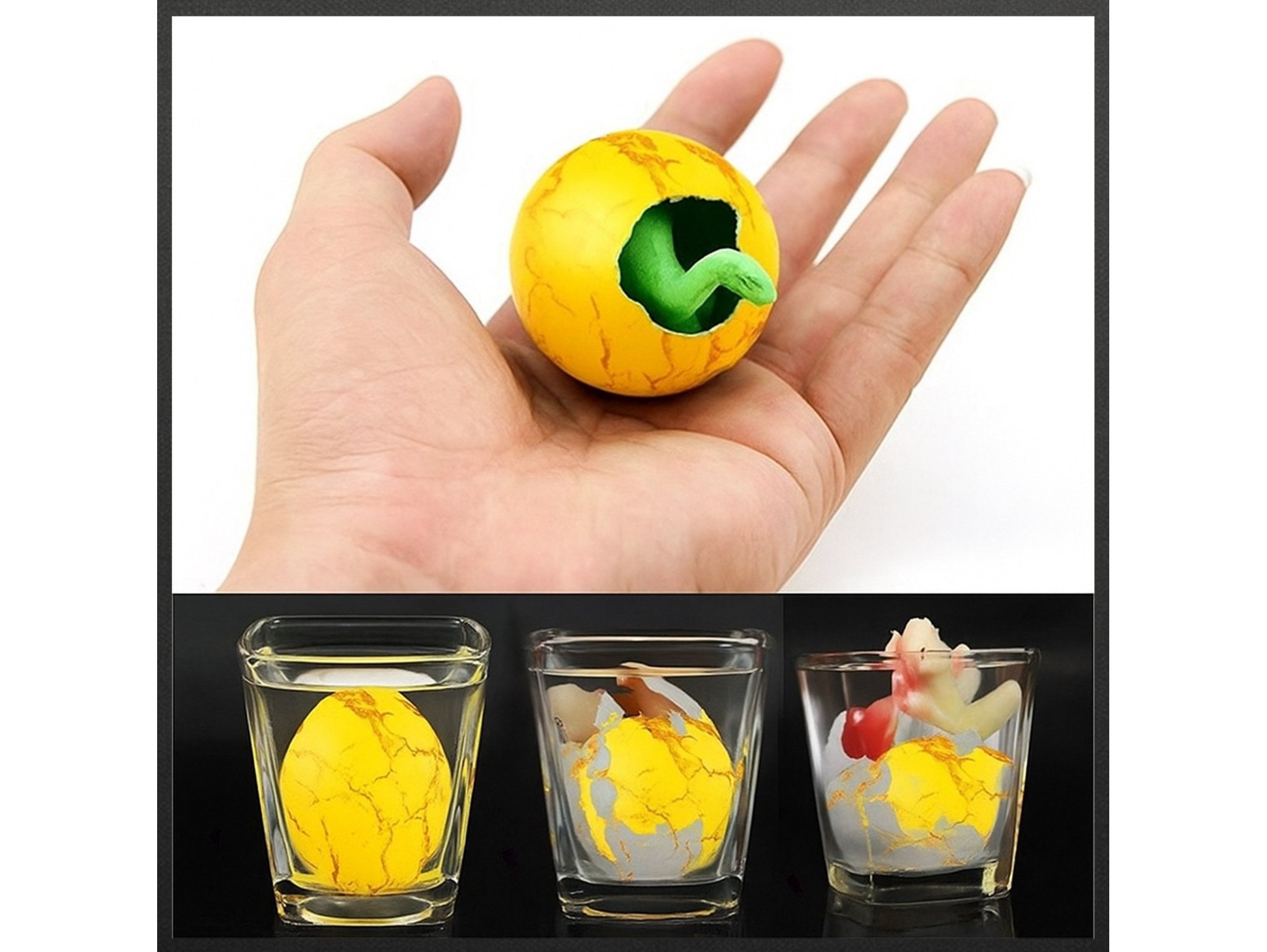 - Kiedy skorupka jest już rozerwana, pozostaw otwarte jajko w wodzie. Dinozaur będzie stopniowo rósł absorbując wodę przez następne 5 do 8 dni.
