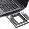 Aluminiowa kieszeń na dysk HDD 2,5 cala SATA montowana w standardowe miejsce montażowe stacji CD/DVD 9,5mm SATA w obudowie laptopa.