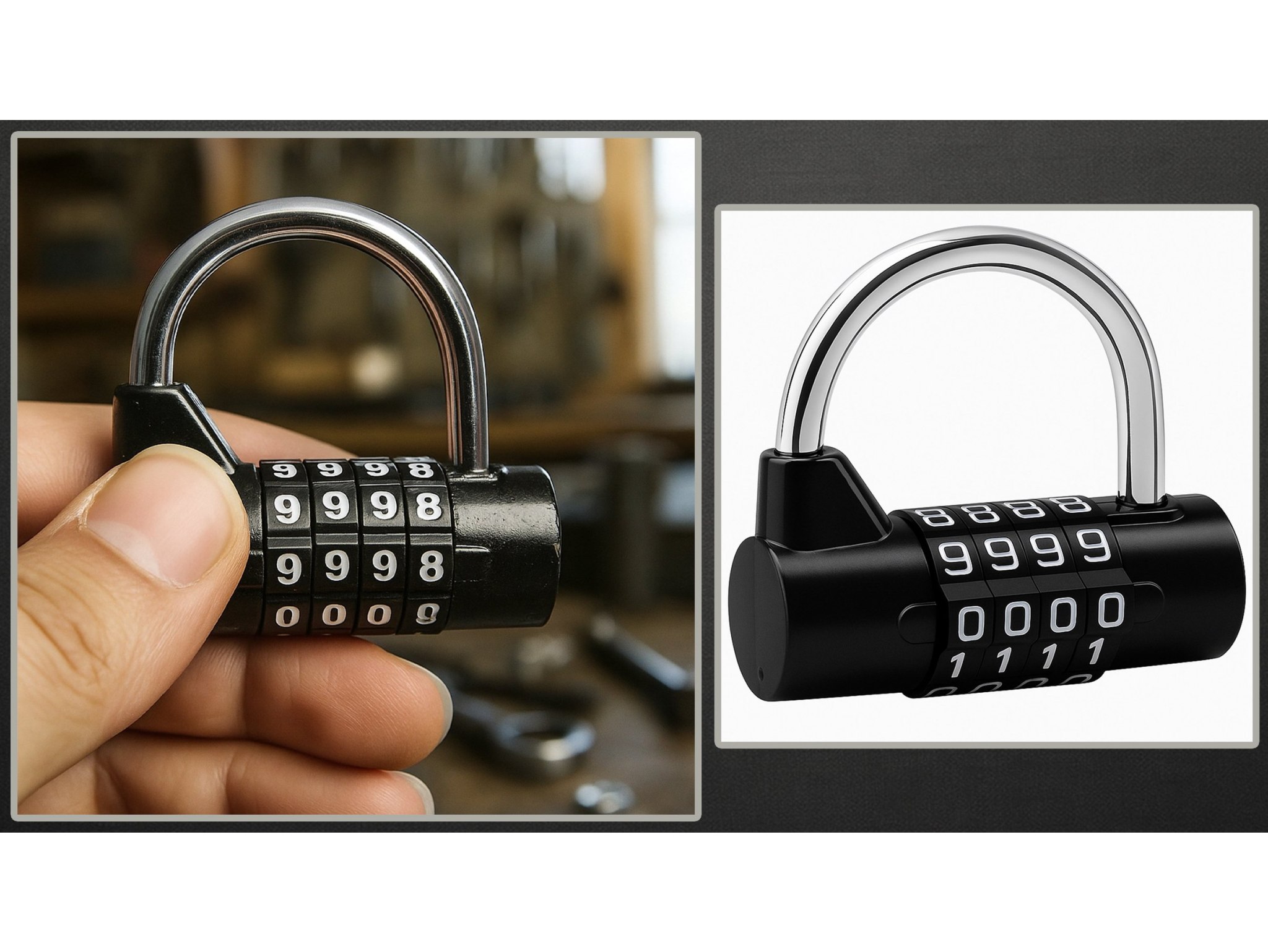 Zamek szyfrowy z 4-pozycyjnym kodem zapewnia wysoki poziom ochrony, eliminując konieczność używania kluczy. Możesz zmienić kod w dowolnym momencie, dostosowując zabezpieczenie do swoich potrzeb (instrukcja zmiany szyfru znajduje się na opakowaniu).