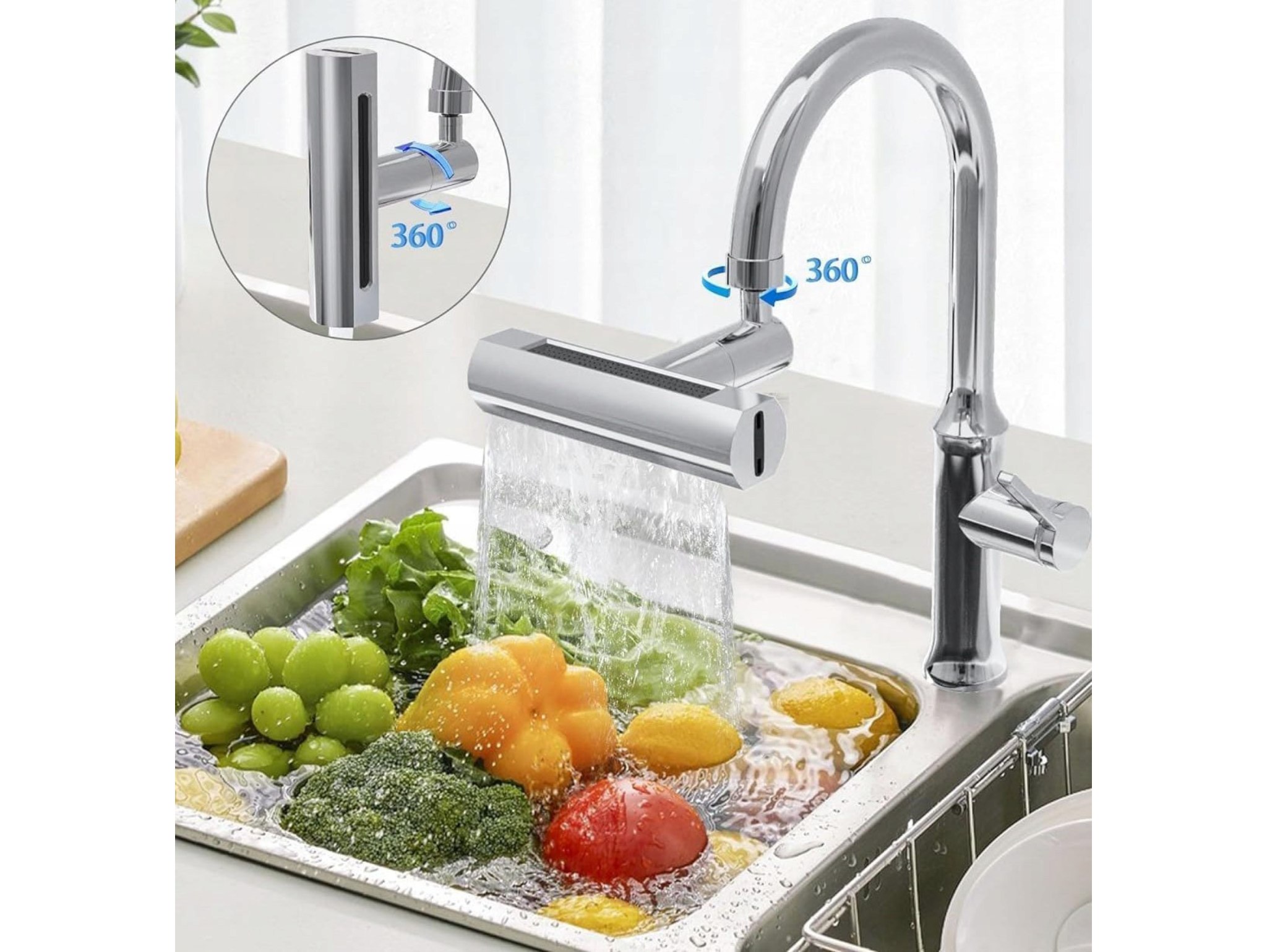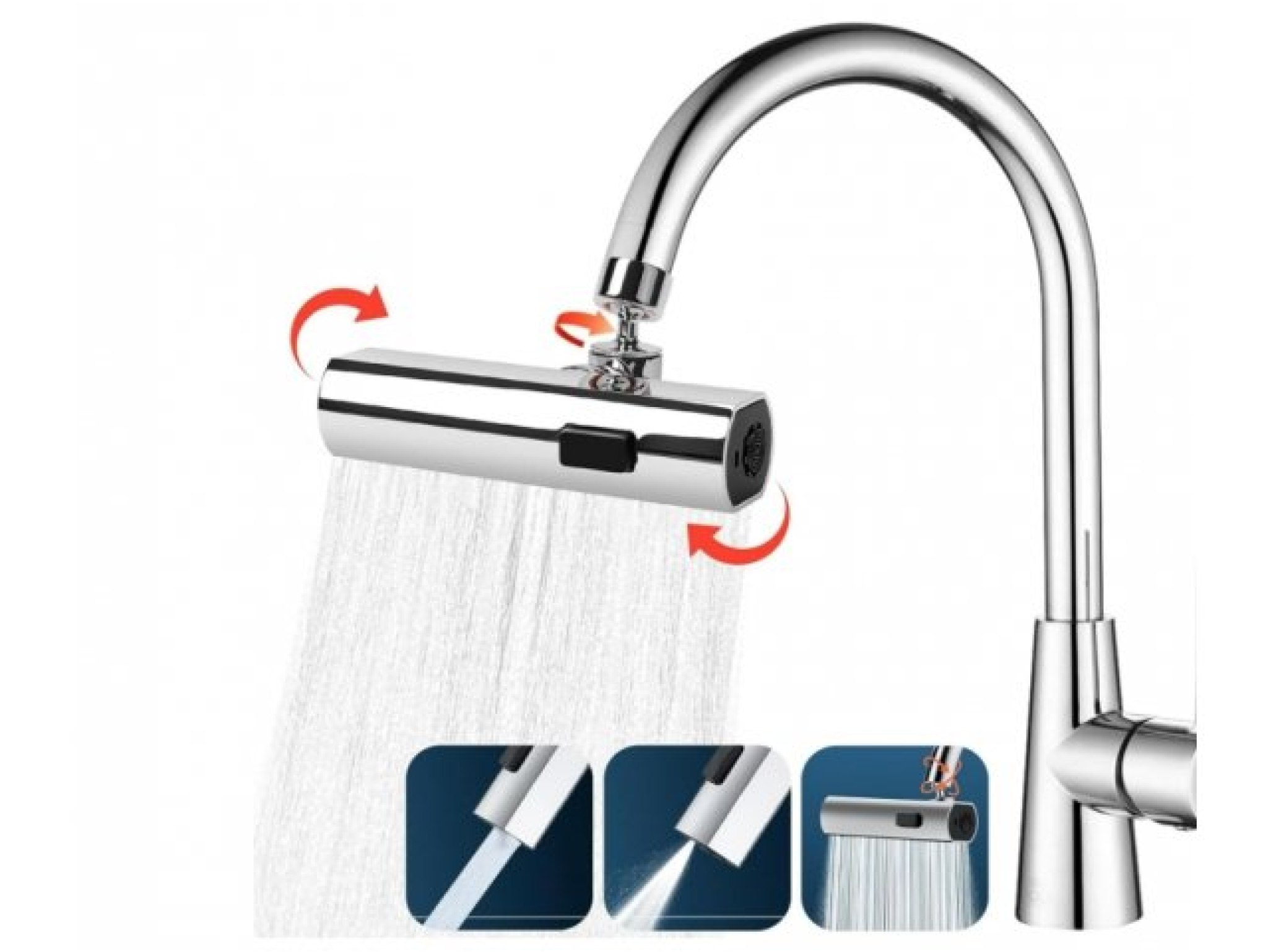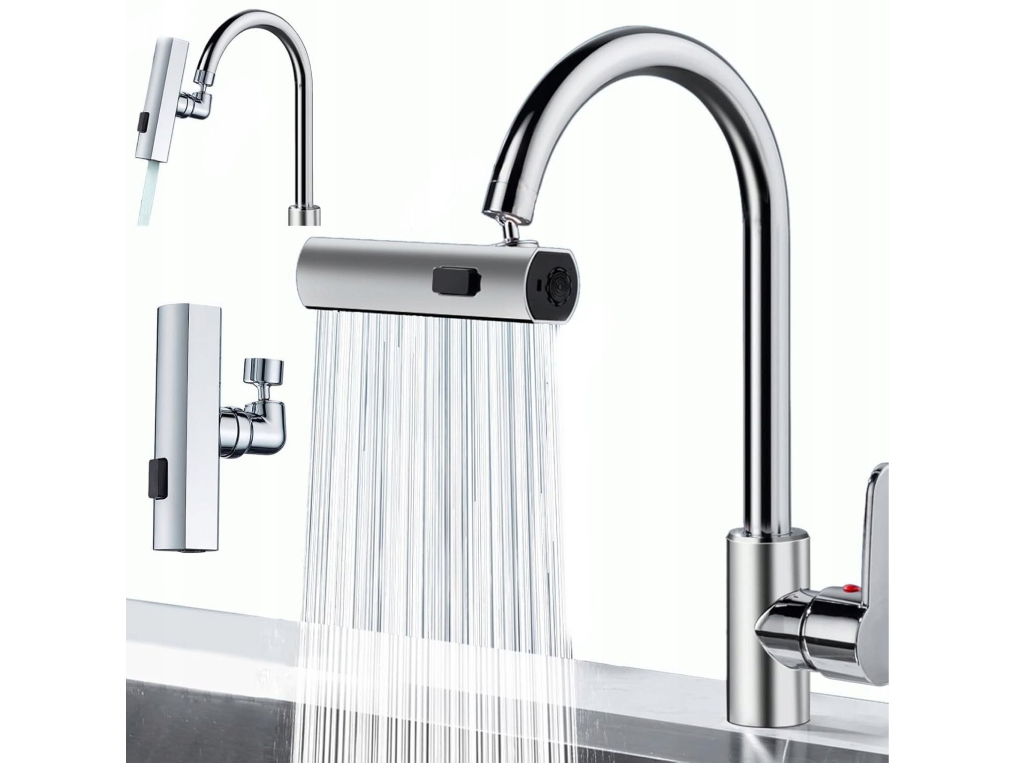 Przedłużacz kranu pomaga zmniejszyć zużycie wody, jednocześnie oferując cztery praktyczne tryby przepływu: