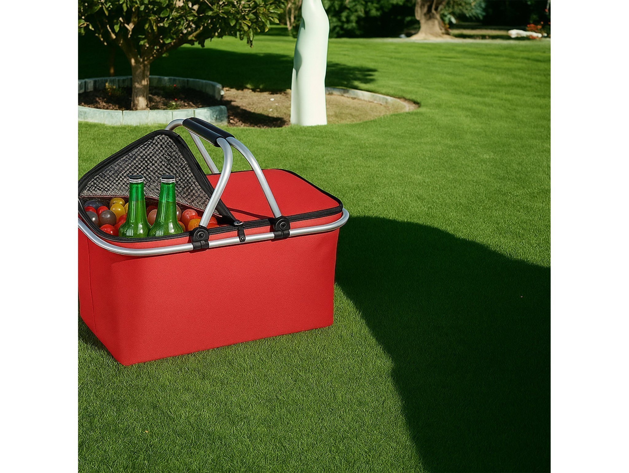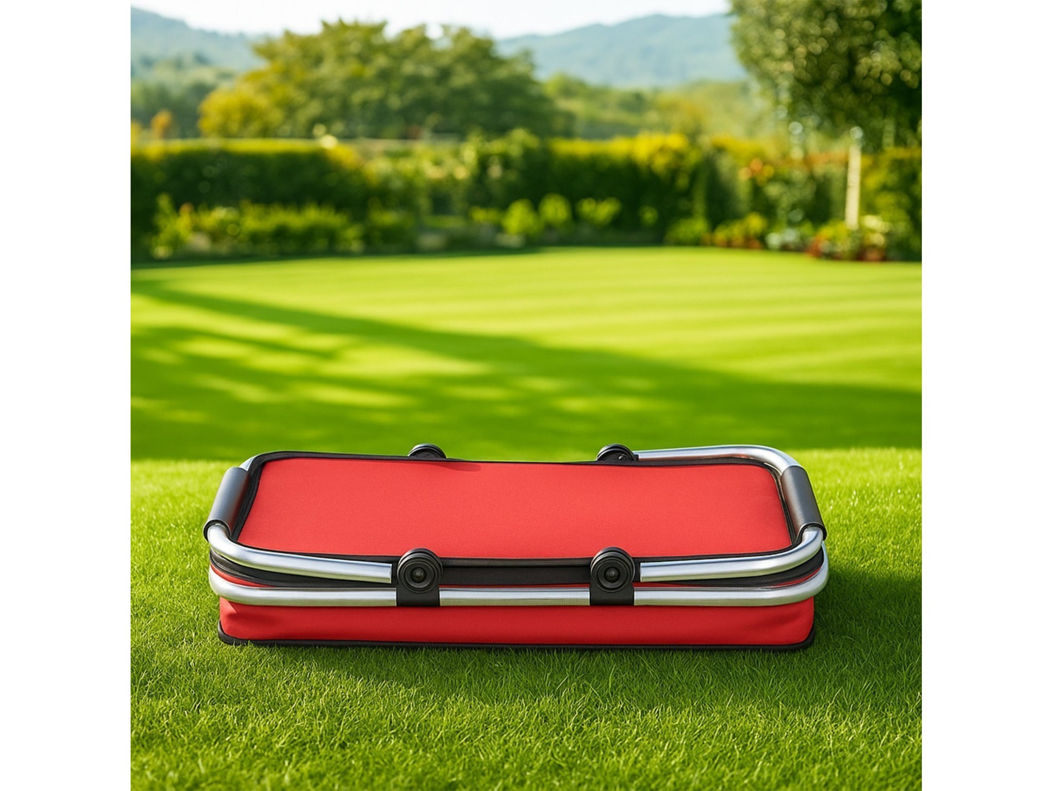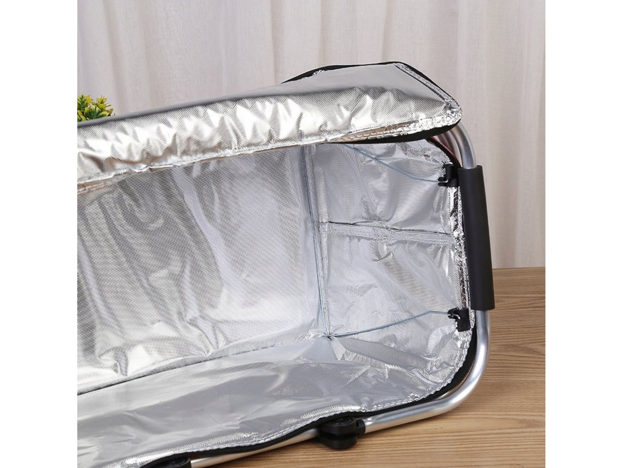 Czy planujesz piknik w parku, plażowanie czy biwak na świeżym powietrzu? Termiczny kosz piknikowy to must-have na każdą tego typu wyprawę! Dzięki aluminiowej ramie oraz specjalnej warstwie folii aluminiowej termicznej, ten kosz doskonale utrzymuje temperaturę przechowywanych produktów, zapewniając, że jedzenie pozostaje świeże i chłodne przez długi czas. Idealny na przekąski, napoje czy posiłki, które chcesz zabrać ze sobą wszędzie! 🌯🥤
