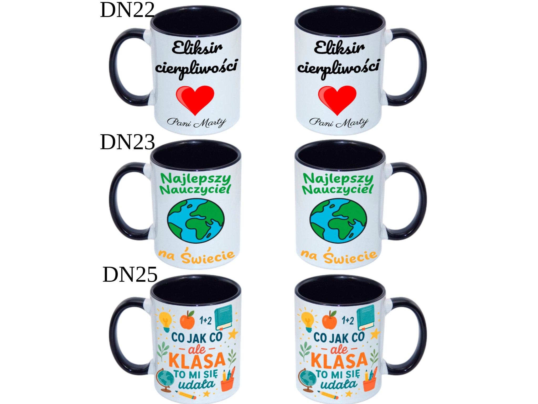 Ponadczasowy design – biały kubek z kontrastowym czarnym wnętrzem i uchem to doskonały wybór zarówno do domu, jak i biura. Stwórz spersonalizowany nadruk, który uczyni każdą chwilę z kawą czy herbatą jeszcze bardziej wyjątkową. Świetny na prezent dla bliskich lub jako unikalny gadżet firmowy!