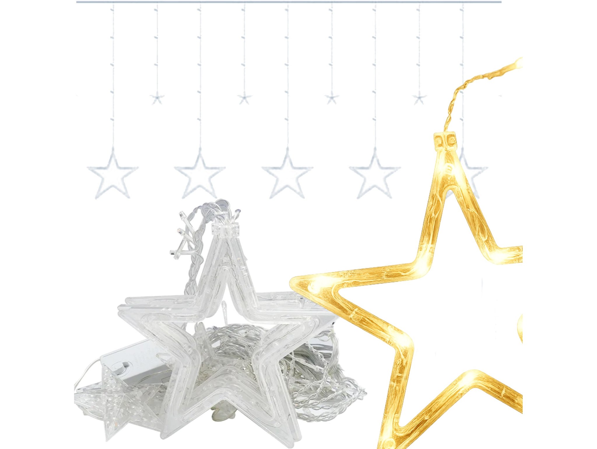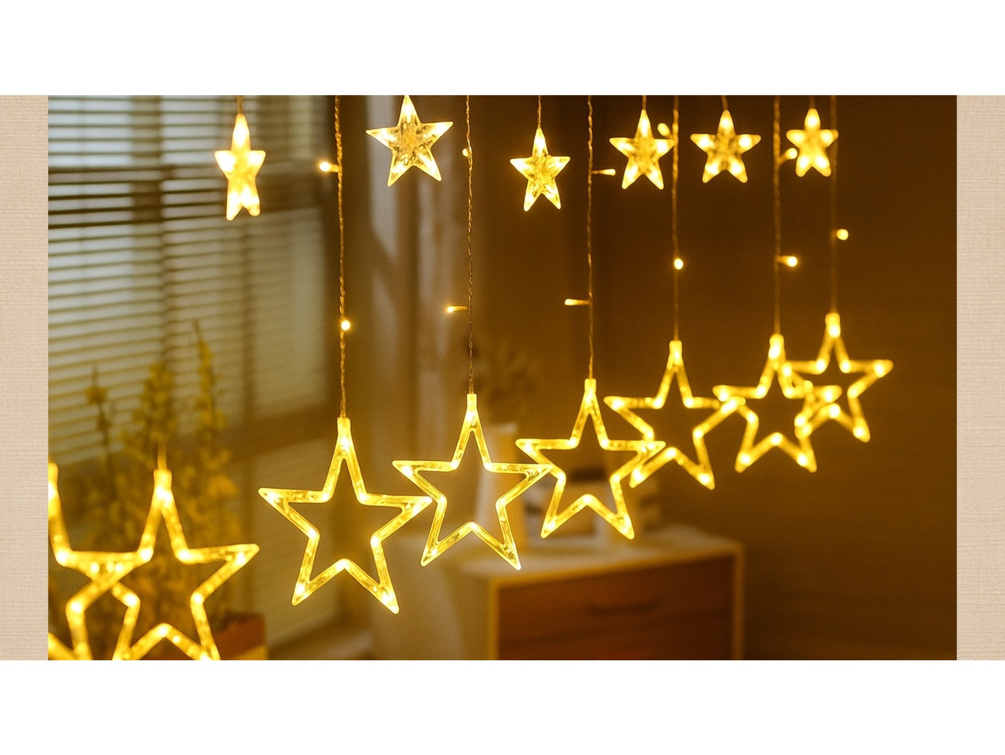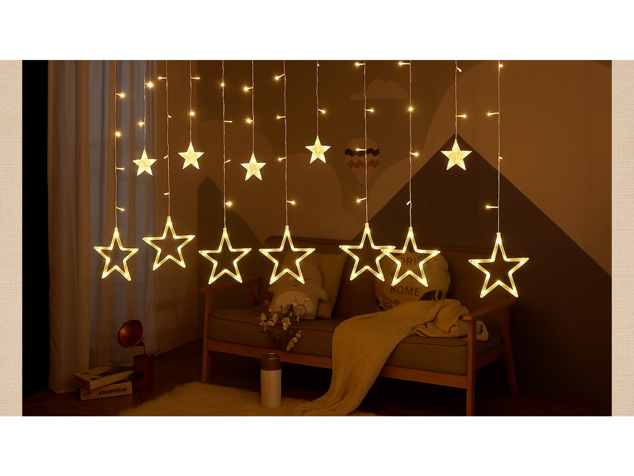 Wprowadź magiczną atmosferę Bożego Narodzenia do swojego wnętrza dzięki lampkom w formie kurtyny świetlnej! Gwiazdki LED rozświetlą Twoje pomieszczenie delikatnym, ciepłym światłem, tworząc niezapomniany klimat świąteczny. To doskonały wybór zarówno na choinkę, jak i do dekoracji okien, ścian czy innych przestrzeni w domu.