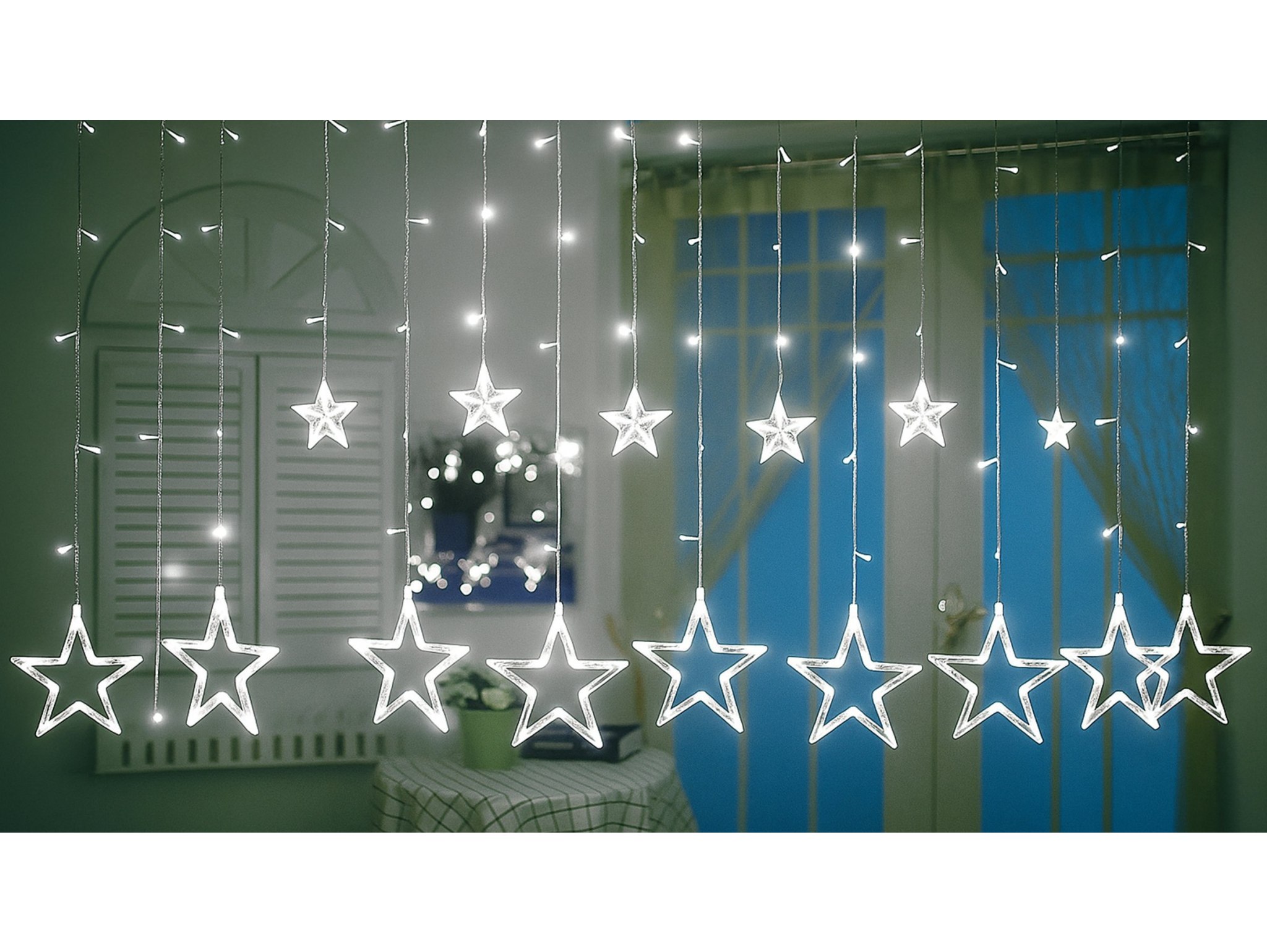 Wprowadź magiczną atmosferę Bożego Narodzenia do swojego wnętrza dzięki lampkom w formie kurtyny świetlnej! Gwiazdki LED rozświetlą Twoje pomieszczenie delikatnym, ciepłym światłem, tworząc niezapomniany klimat świąteczny. To doskonały wybór zarówno na choinkę, jak i do dekoracji okien, ścian czy innych przestrzeni w domu.