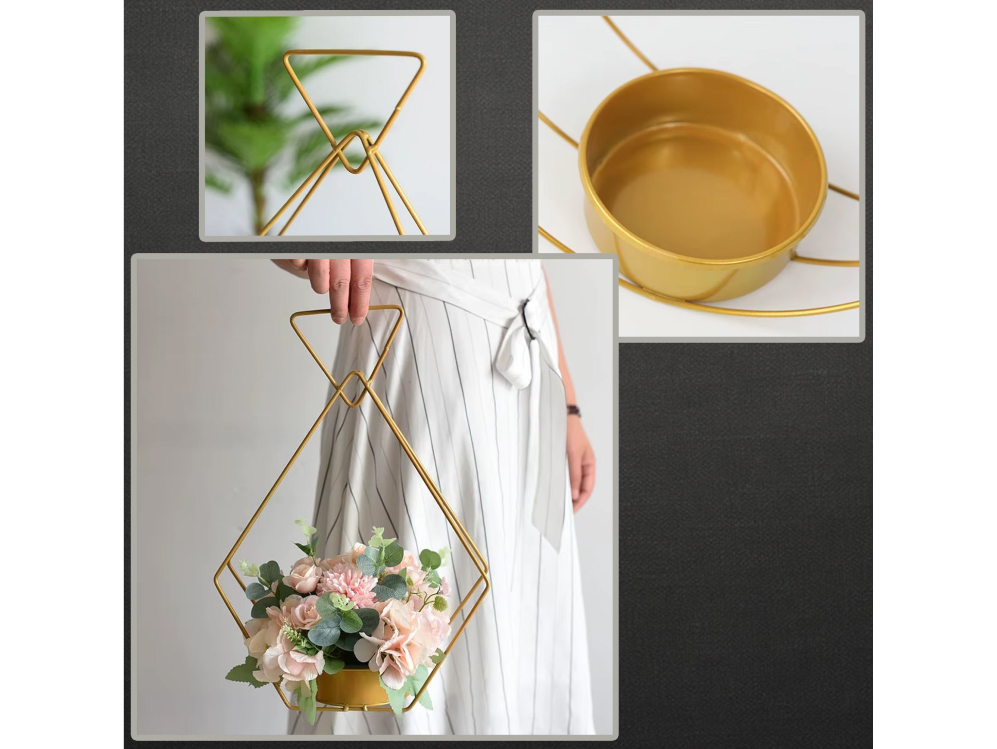 Złoty stojak na kwiaty to coś więcej niż tylko praktyczny uchwyt na doniczki – to stylowa ozdoba, która wprowadzi do każdego wnętrza nutę klasy i harmonii. 🌸 Jego elegancki wygląd sprawia, że znakomicie podkreśla piękno roślin, tworząc spójną i estetyczną kompozycję. Idealny na wesele, przyjęcie, event lub jako dekoracja codzienna – zawsze doda wnętrzu wyjątkowego blasku i nowoczesnego charakteru.