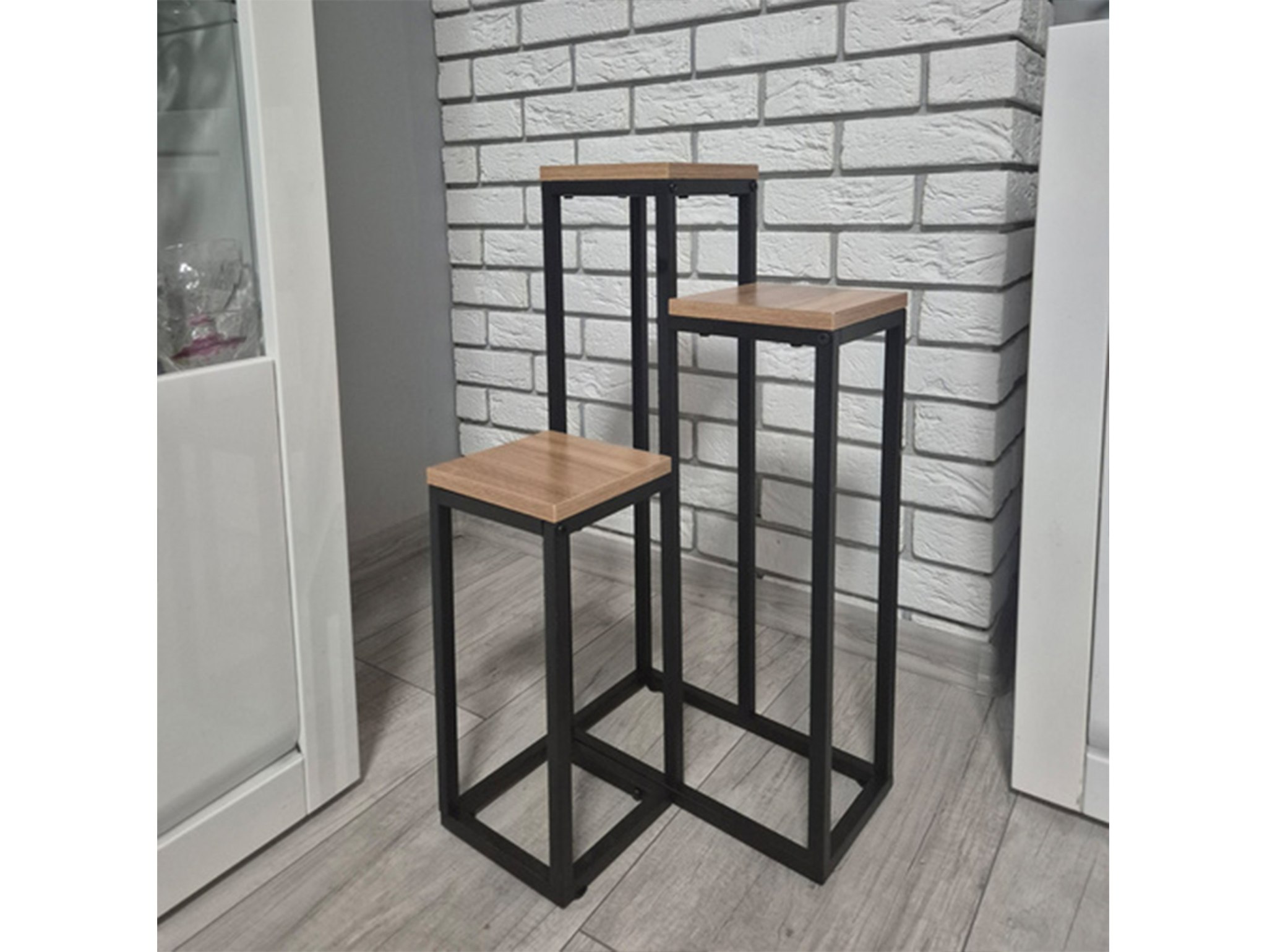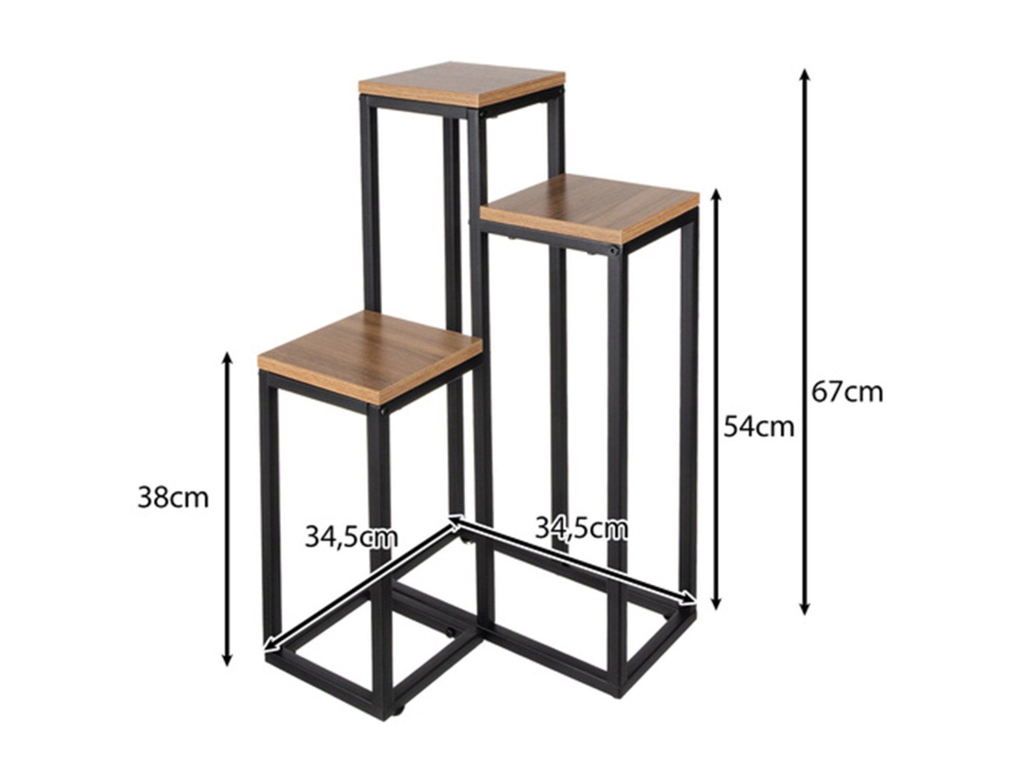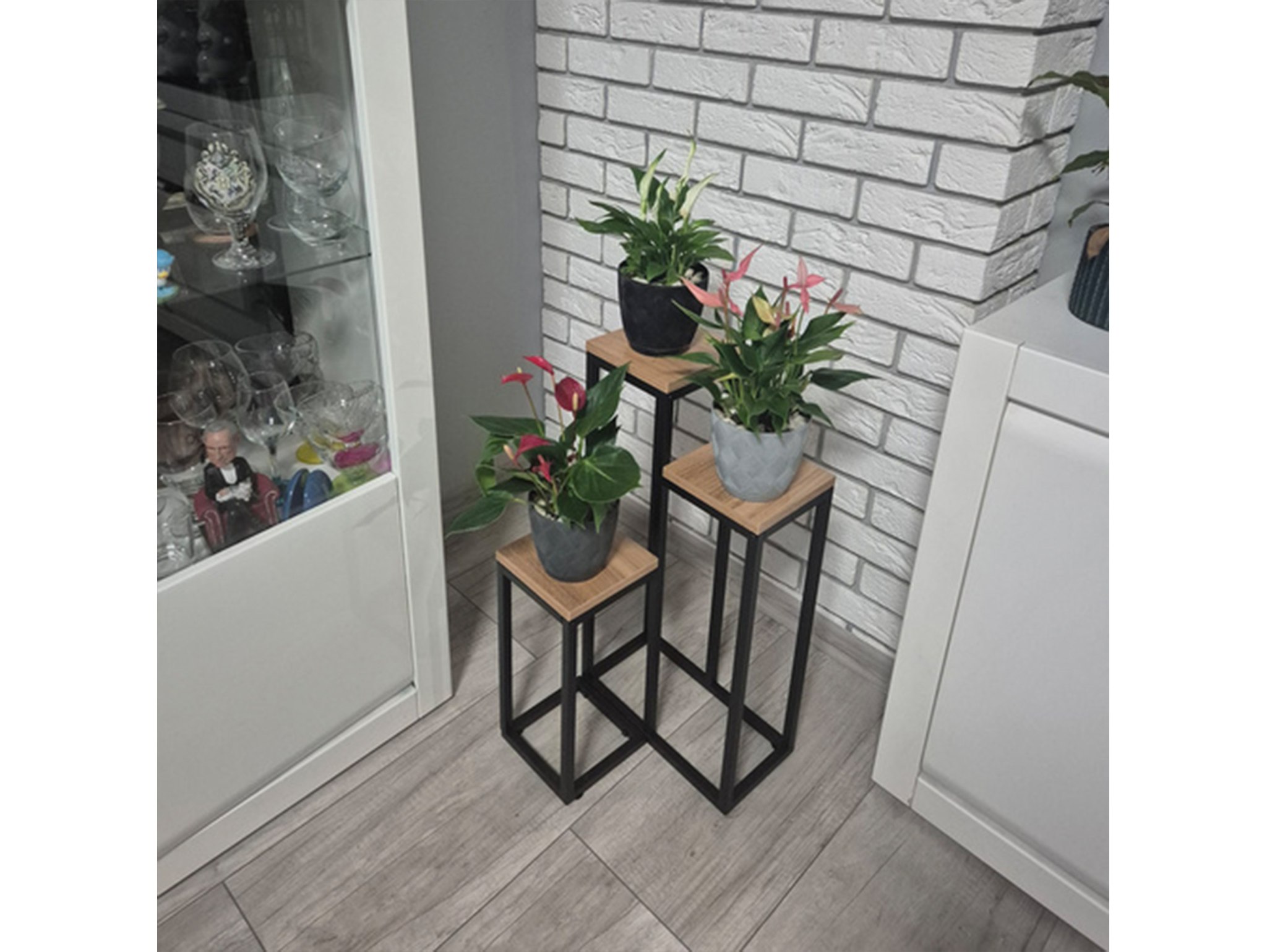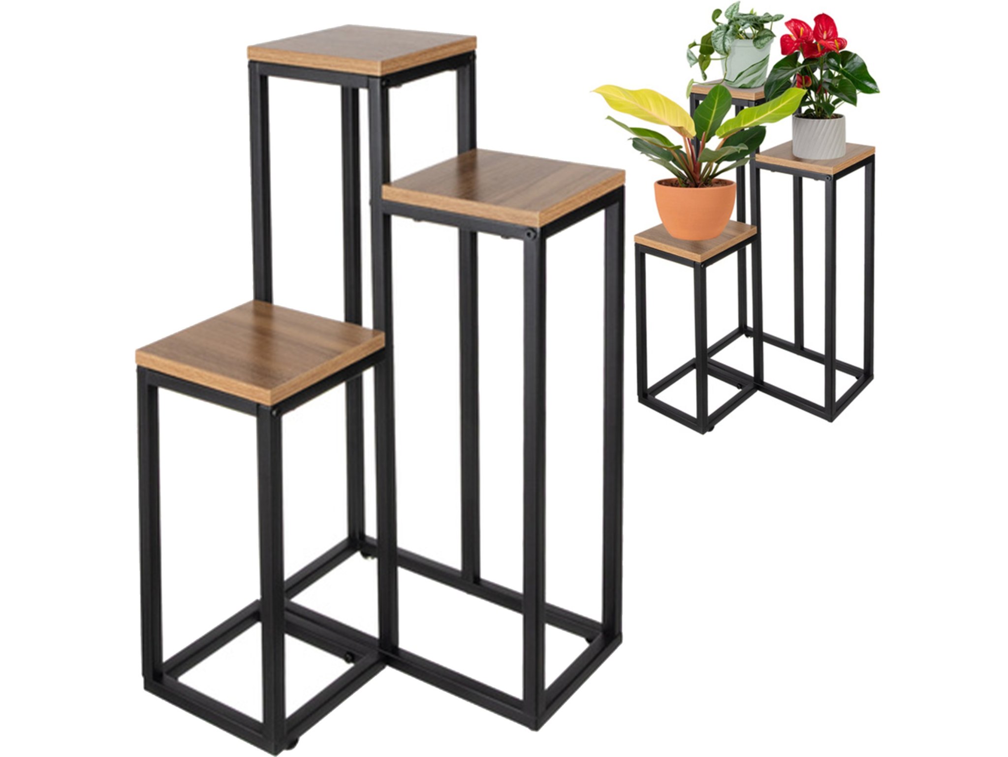 Dodaj wyjątkowego charakteru swojemu wnętrzu dzięki 3-poziomowemu kwietnikowi w stylu loftowym. To elegancki stojak na kwiaty, który doskonale komponuje się z nowoczesnymi aranżacjami, a jednocześnie zapewnia przestronną ekspozycję dla Twoich roślin doniczkowych. Idealny do salonu, ogrodu, na balkon, a także do biura czy przedpokoju. Dzięki połączeniu metalu i MDF, kwietnik łączy w sobie nowoczesny design z niezawodną trwałością.
