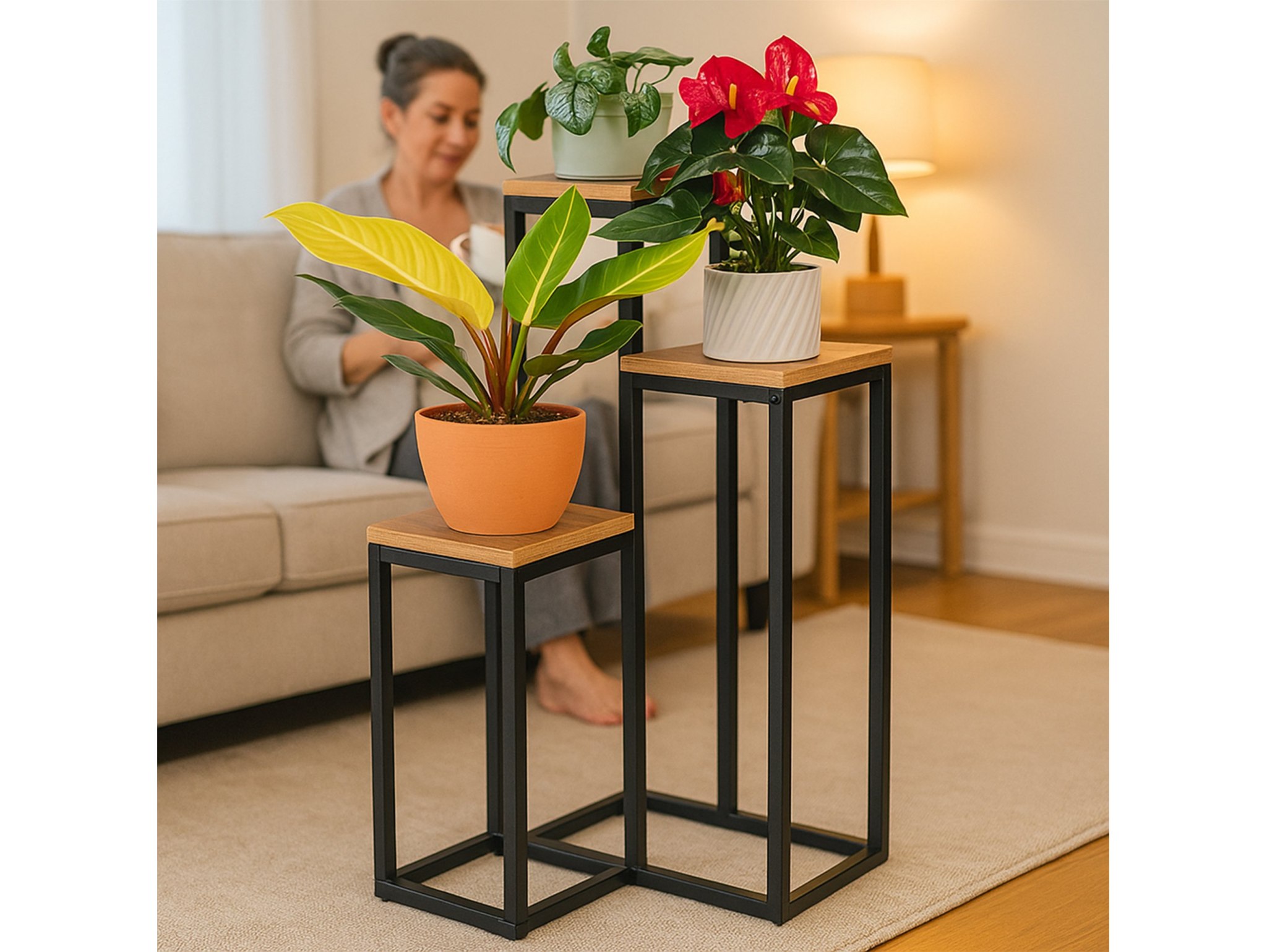 Kwietnik stojący metalowy loft 3-poziomowy – nowoczesna dekoracja i funkcjonalność w jednym! 🌿🏢