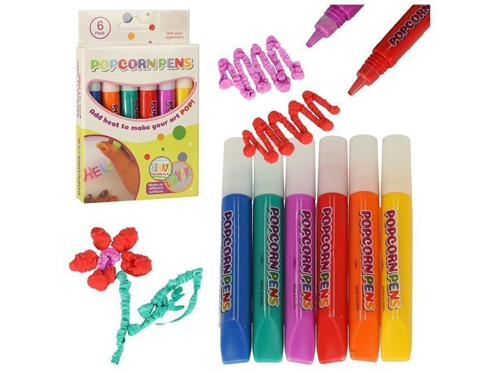 Każde dziecko kocha rysować i malować, ale teraz ta zabawa może być jeszcze ciekawsza! Magiczne flamastry Popcorn zamieniają zwykłe rysowanie w niesamowite widowisko. To zestaw sześciu kolorowych mazaków, które pod wpływem ciepła zmieniają się w „popcornowe” obrazy 3D!