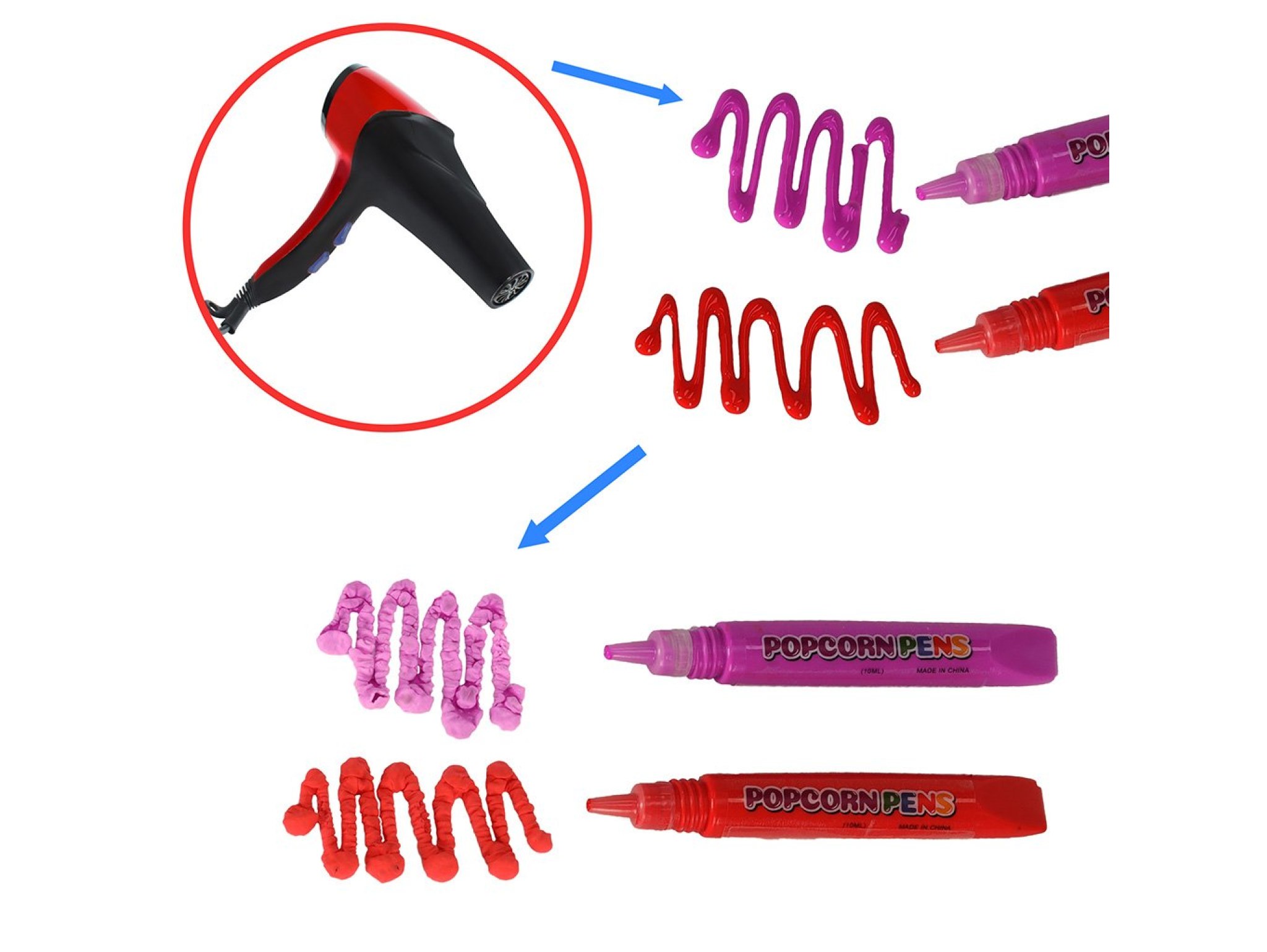 Jak to działa? Najpierw tworzysz rysunek, a następnie używasz suszarki do włosów. Już po kilku sekundach linie zaczynają pęcznieć, rosnąć i nabierać objętości, przypominając prażoną kukurydzę. Efekt? Magiczne dzieło, które zachwyci każde dziecko i dorosłego.