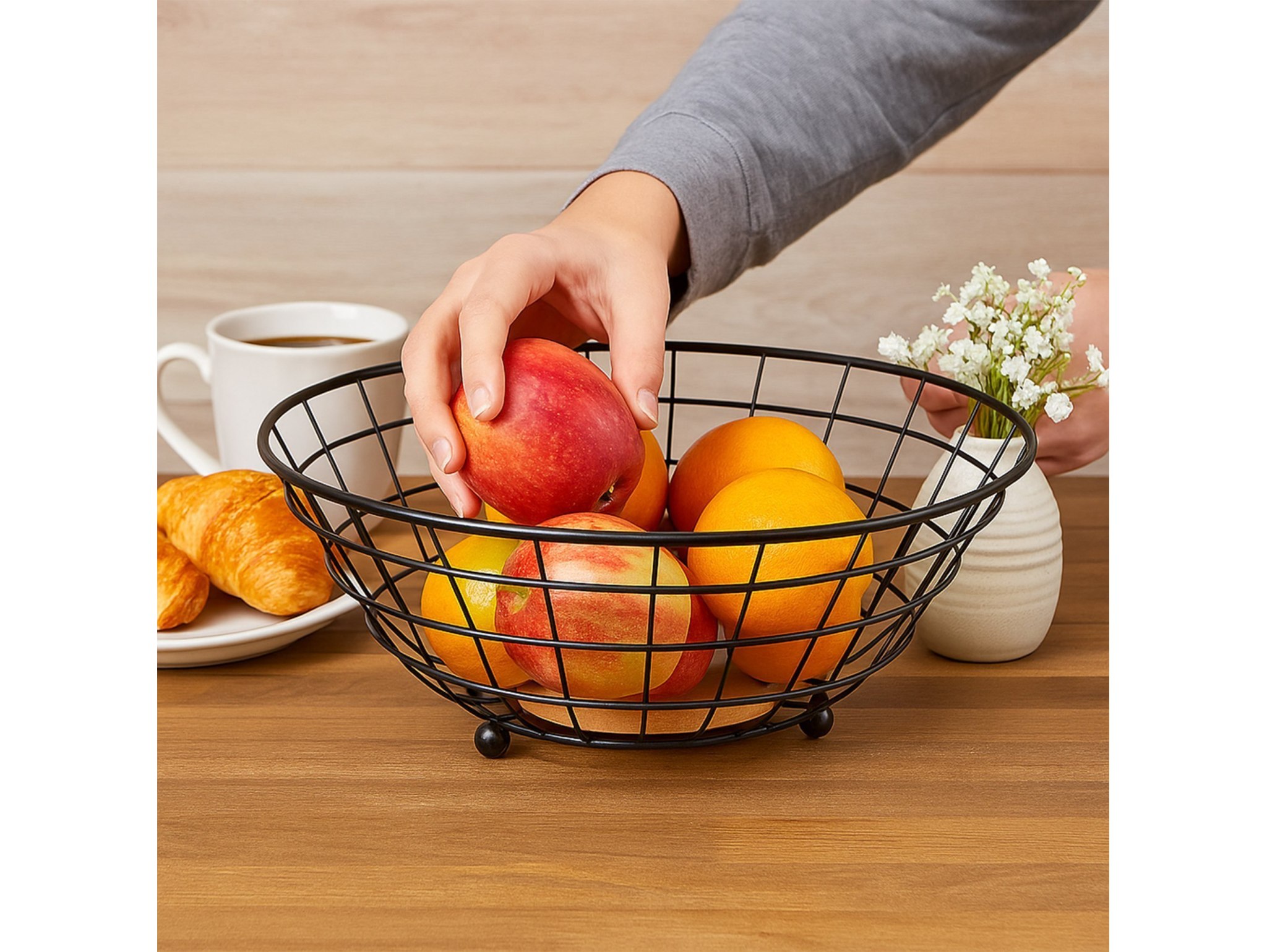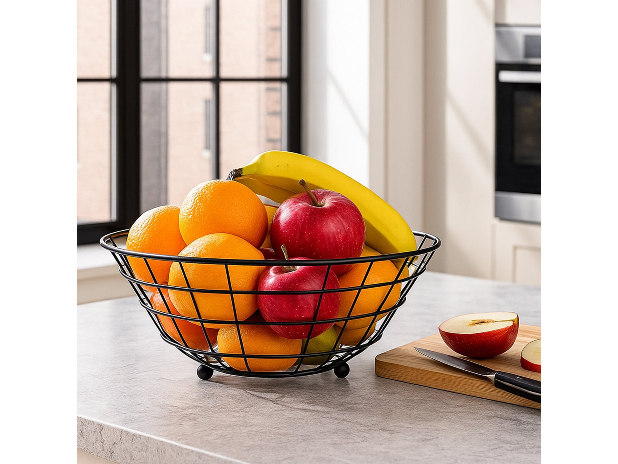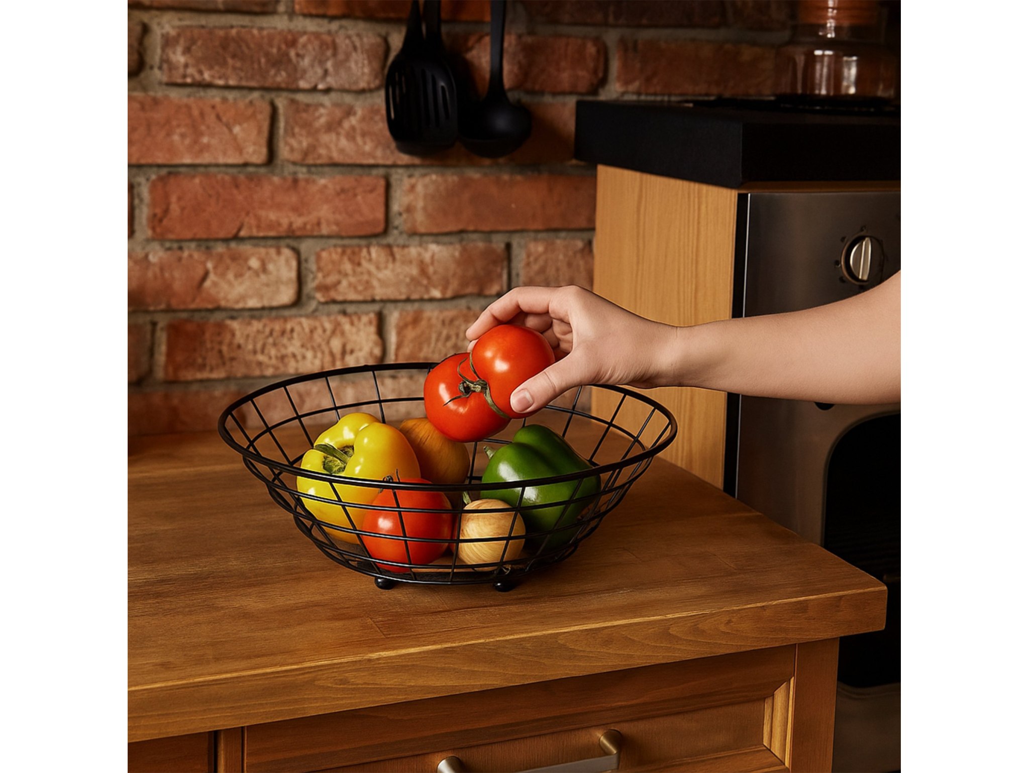 ✅ Funkcjonalność – koszyk zapewnia doskonałą cyrkulację powietrza, co pomaga owocom i warzywom dłużej zachować świeżość.