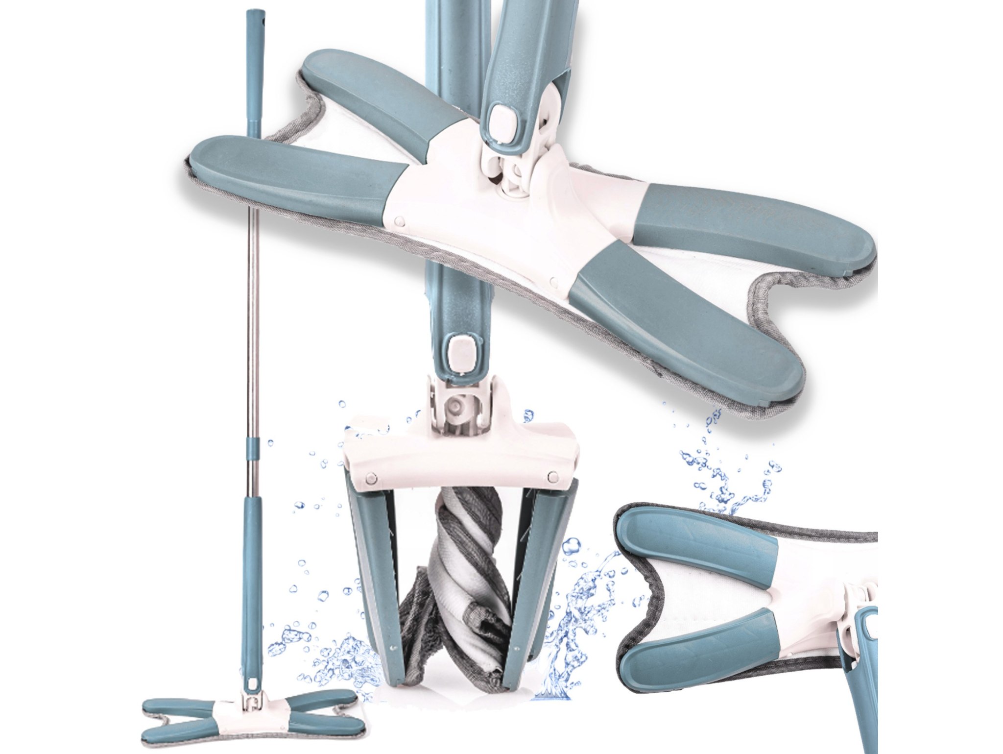 Mop wyciskany płaski składany do mycia obrotowy z wyciskaczem typu x wkład biało-niebieski