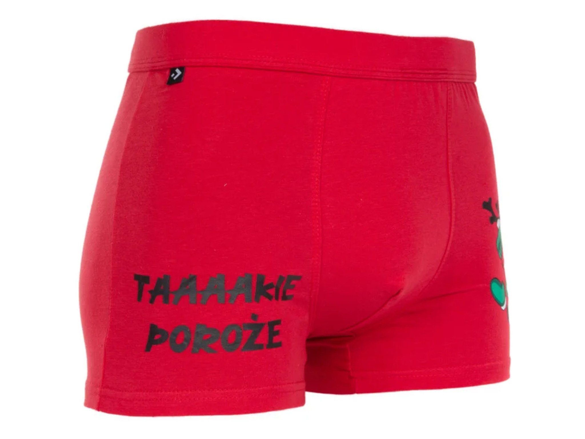 Bokserki męskie z reniferem „Taaaakie poroże” – wygoda, humor i świąteczny klimat! 🎄🦌