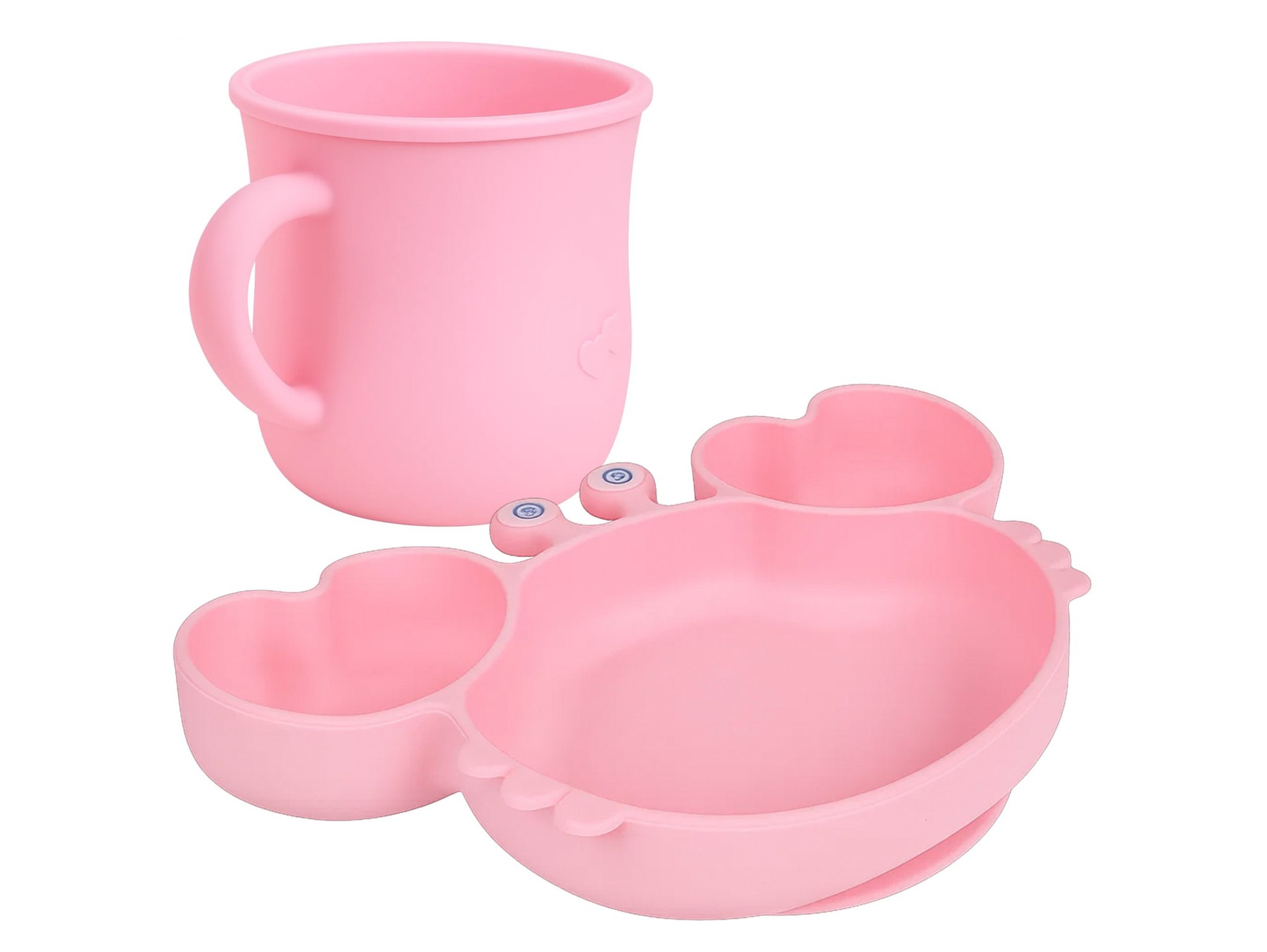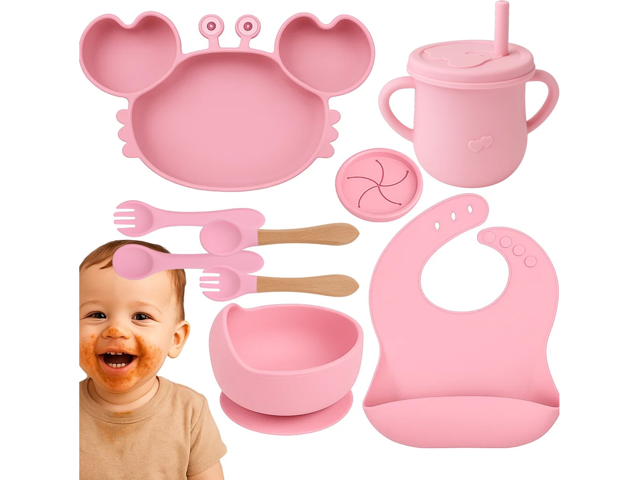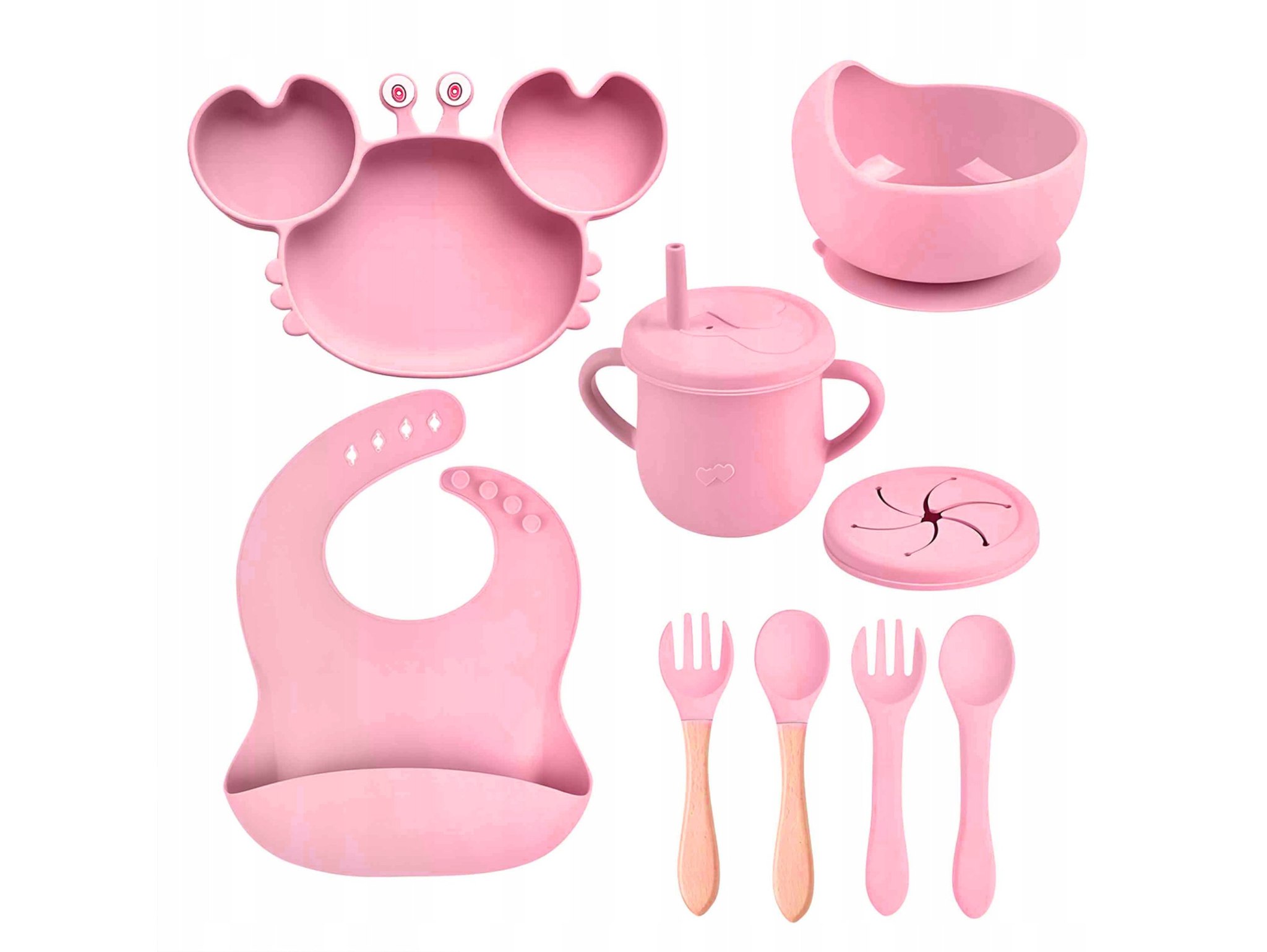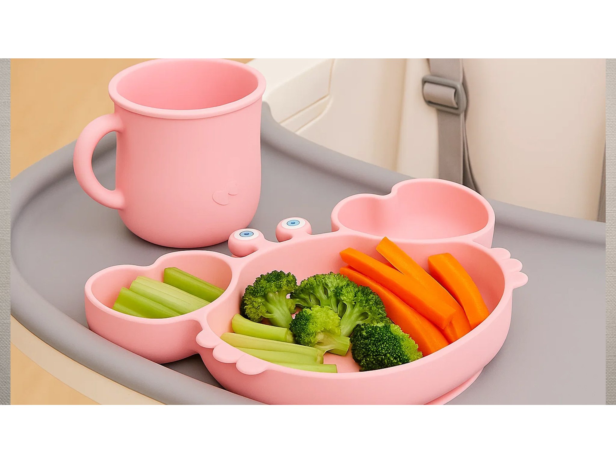 Zestaw naczyń silikonowych dla dzieci ze śliniakiem i przyssawką – komfort, bezpieczeństwo i radość z każdego posiłku! 🍽️🦀