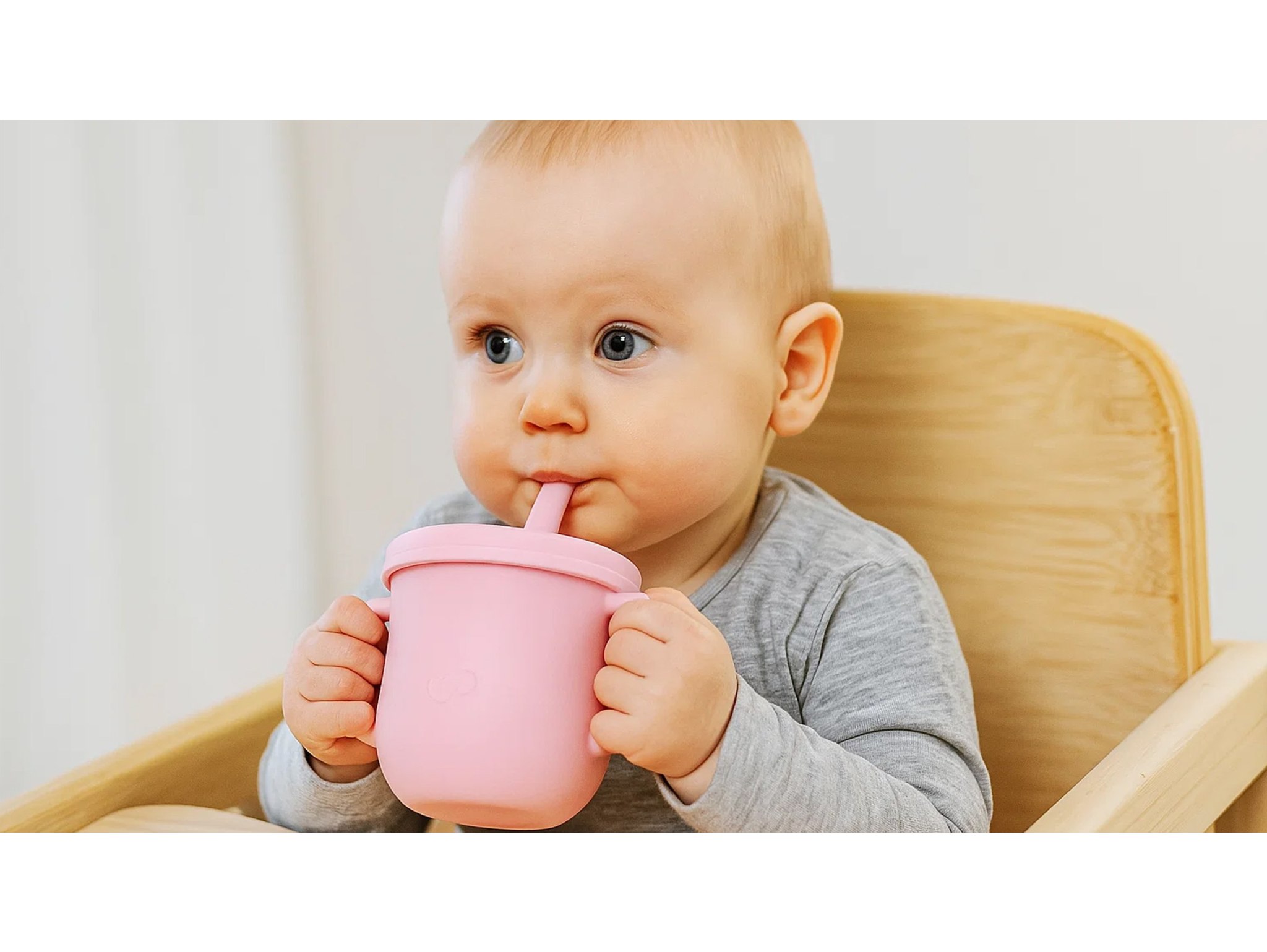 Zestaw obejmuje wszystko, czego potrzeba, by nauka samodzielnego jedzenia była łatwa i przyjemna – talerzyk z przyssawką, miseczkę, kubeczek, sztućce oraz śliniak z kieszonką, który skutecznie chroni ubranie przed zabrudzeniem.