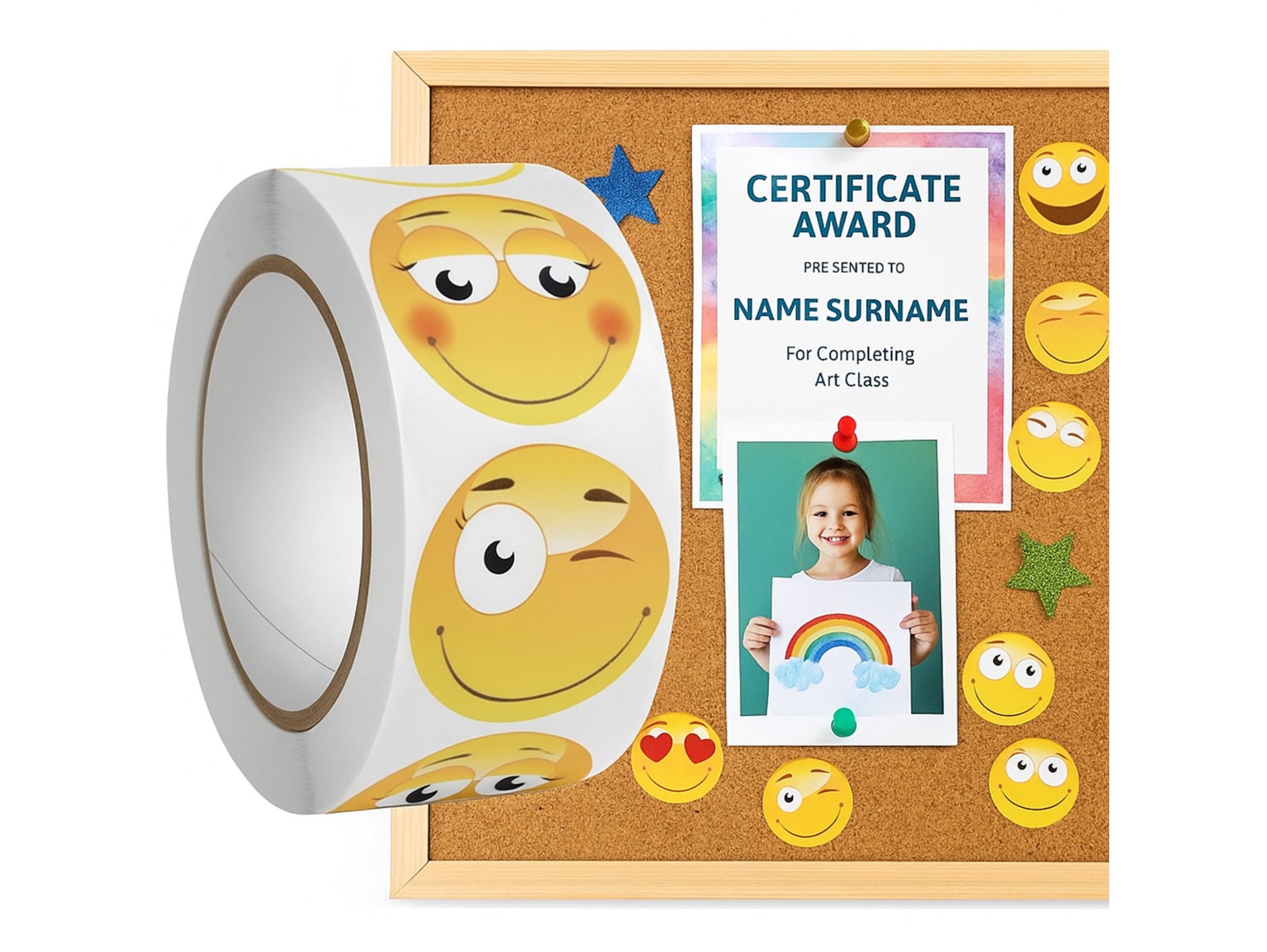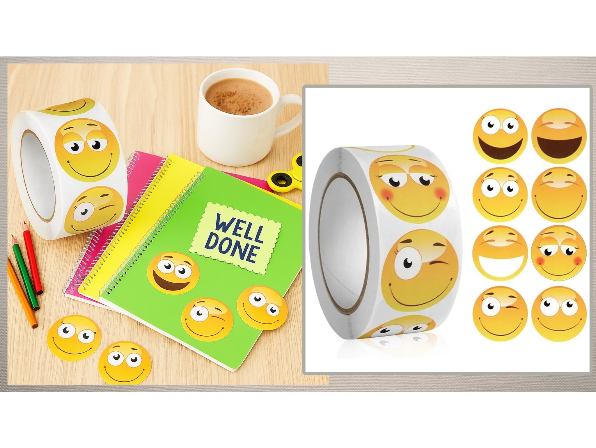 Naklejki motywacyjne dla dzieci – rolka samoprzylepne emotikony, emotki buźki – motywuj i ciesz każdego malucha! 😊🎉