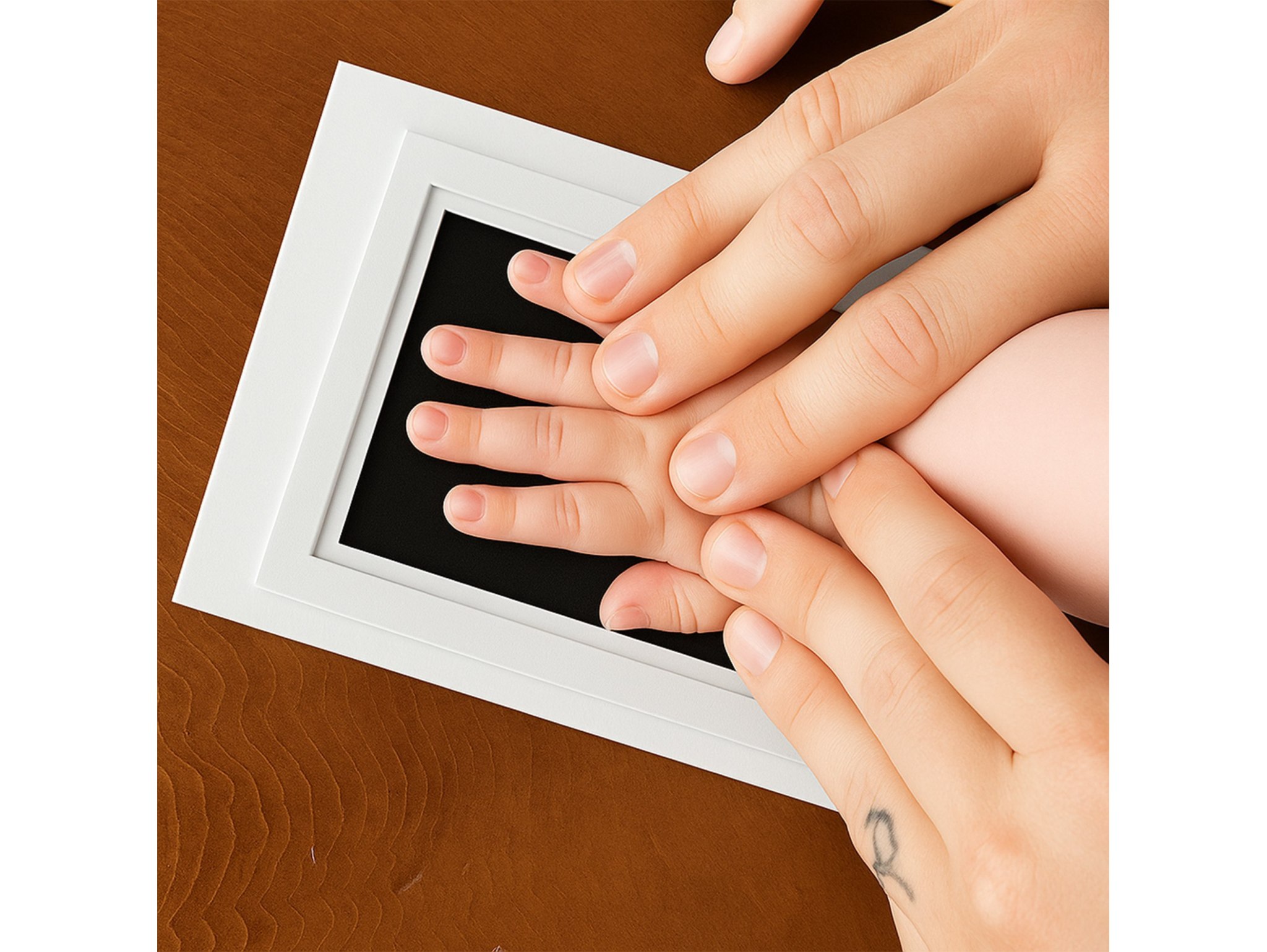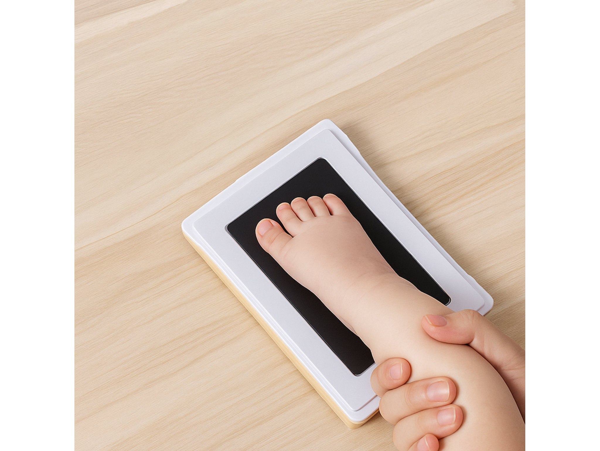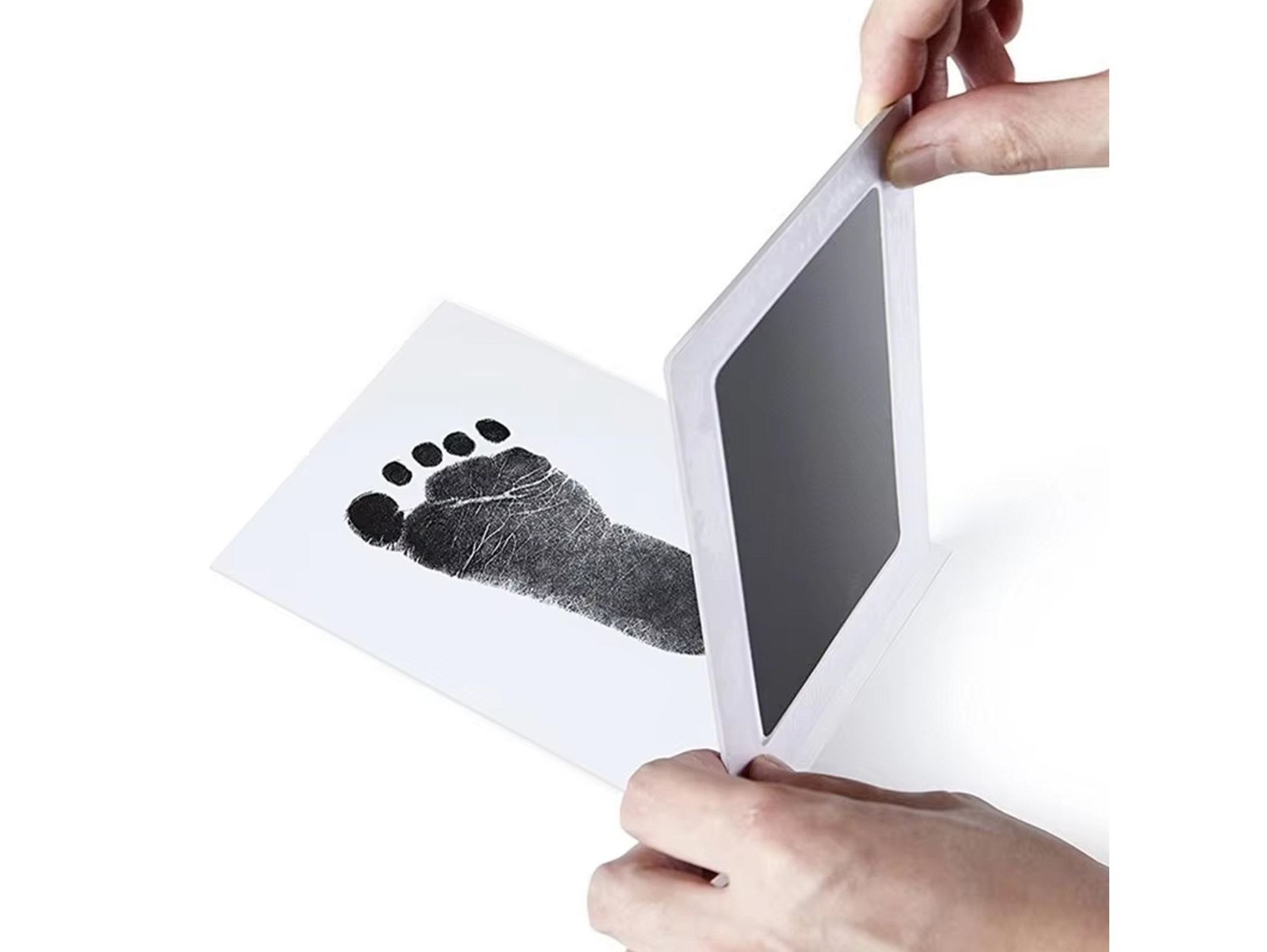 Produkt jest całkowicie bezpieczny dla Twojego dziecka. Zestaw zawiera tusz, który nie wchodzi w kontakt ze skórą maluszka – na arkuszu znajduje się folia ochronna, co sprawia, że odcisk jest wykonany w sposób higieniczny i bezpieczny. Odbicie rączki lub stópki dziecka jest szybkie, proste, a efekt końcowy zachwyca!