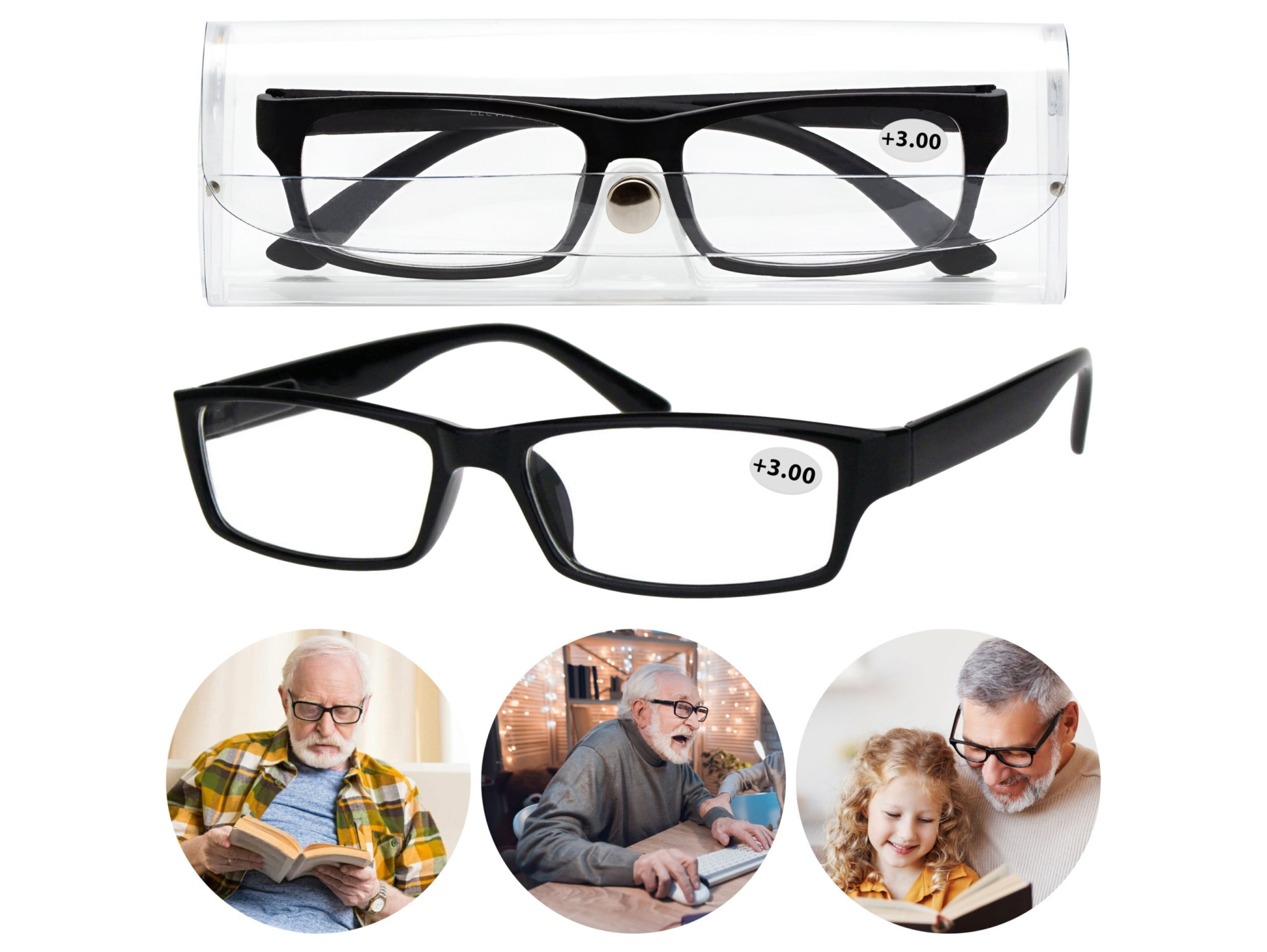 🔹 Uniwersalny design – okulary są odpowiednie zarówno dla mężczyzn, jak i kobiet, dzięki klasycznym, czarnym oprawkom, które pasują do każdego stylu.