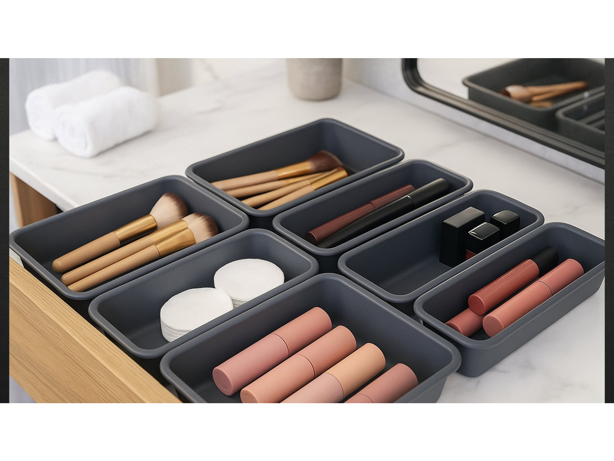 ✅ Optymalny podział przestrzeni – możesz podzielić zestaw między kilka szuflad lub używać go jako organizer na blacie