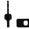 - Zestaw montażowy – w komplecie znajduje się trzon mocujący oraz podkładka, które są niezbędne do prawidłowego zamocowania otwornicy na wiertarce.