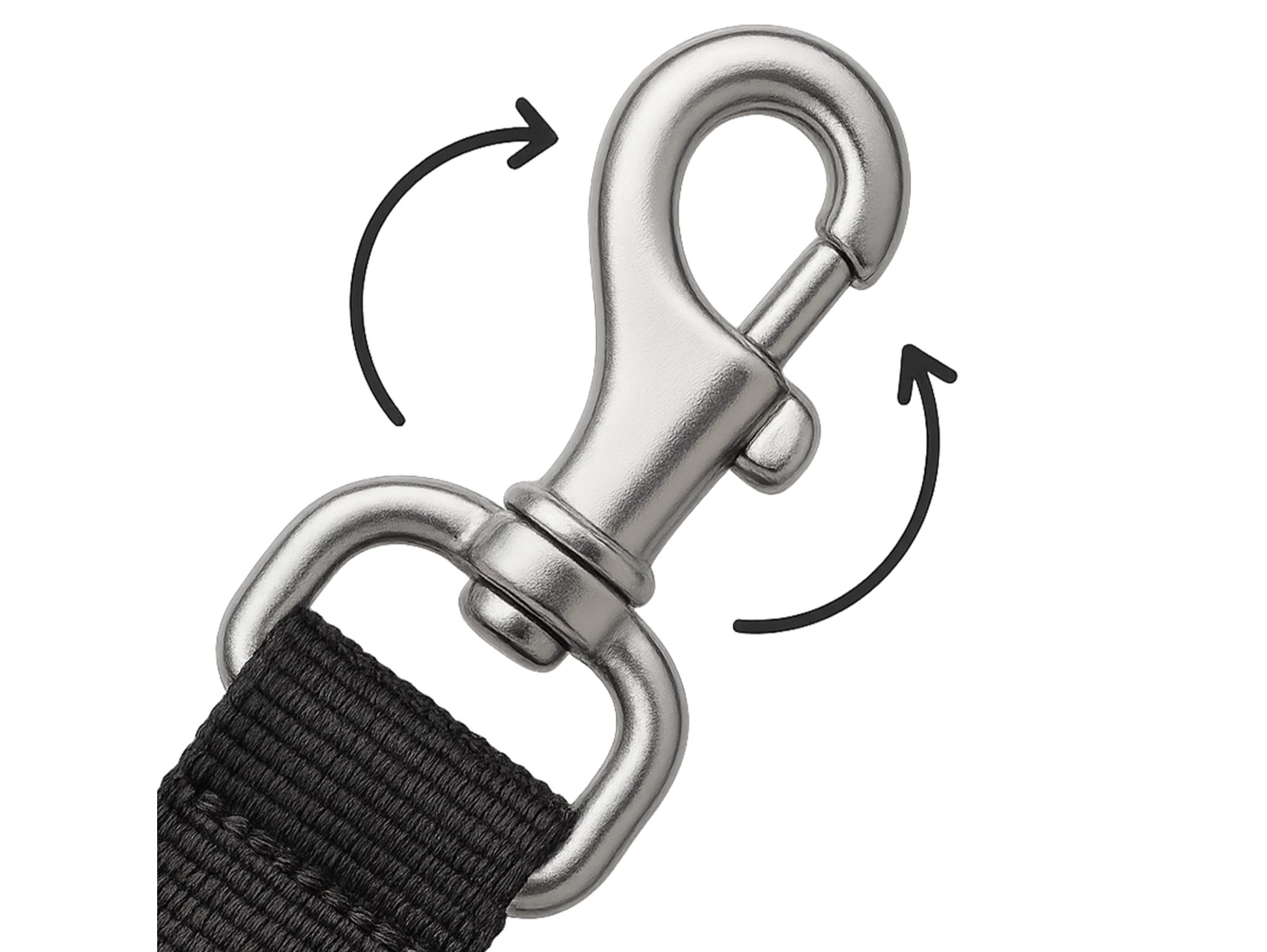 Obrotowy karabińczyk 360° – umożliwia łatwe przypięcie smyczy do obroży lub szelek