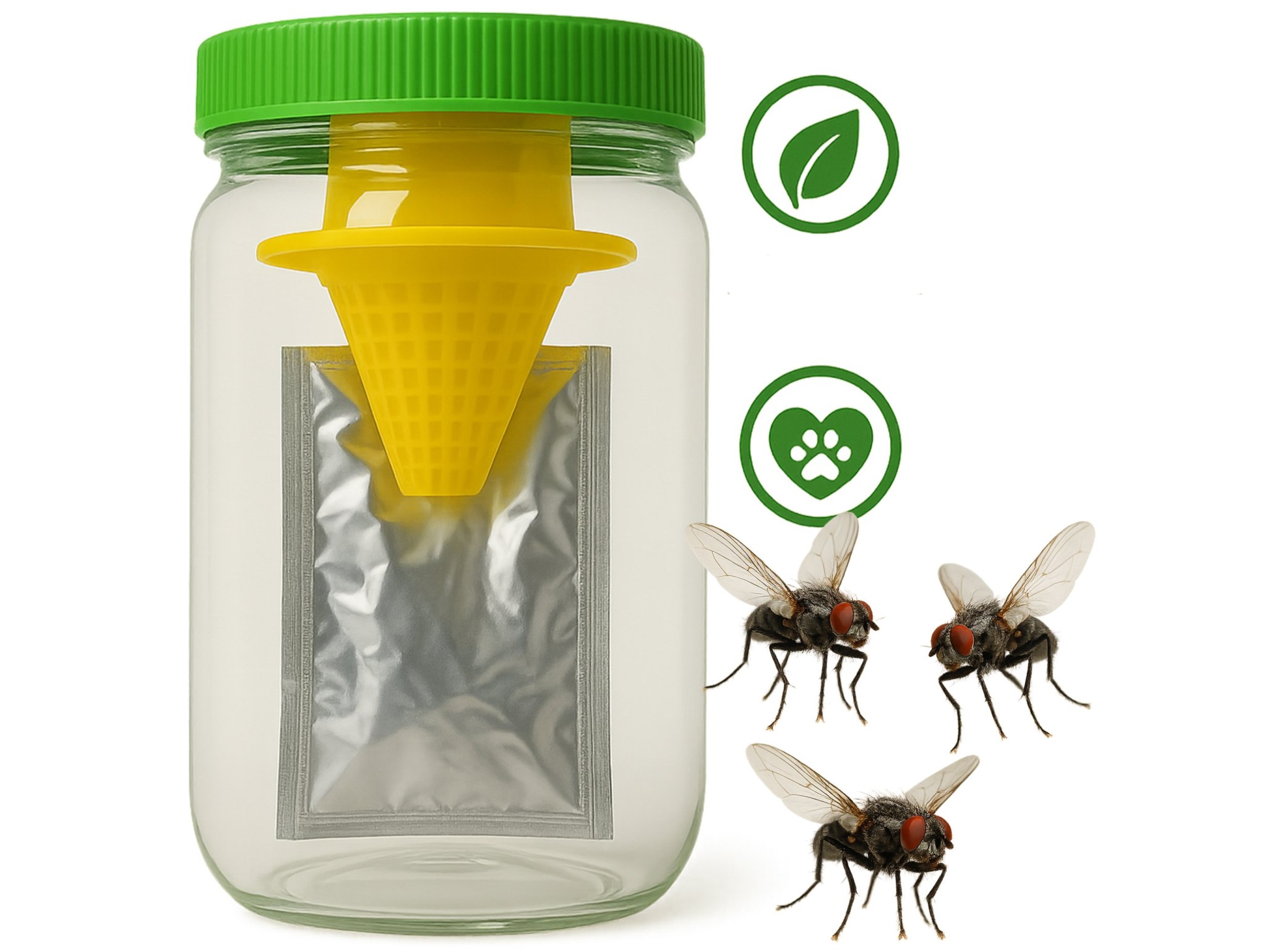 Pułapka jest doskonałym wyborem dla osób, które szukają naturalnych, skutecznych metod walki z muchami, nie stosując szkodliwych chemikaliów, które mogłyby wpłynąć na zdrowie ludzi czy zwierząt. Dzięki niej, Twój dom czy ogród będzie wolny od much, co zapewni Ci większy komfort w codziennym życiu. 🌿