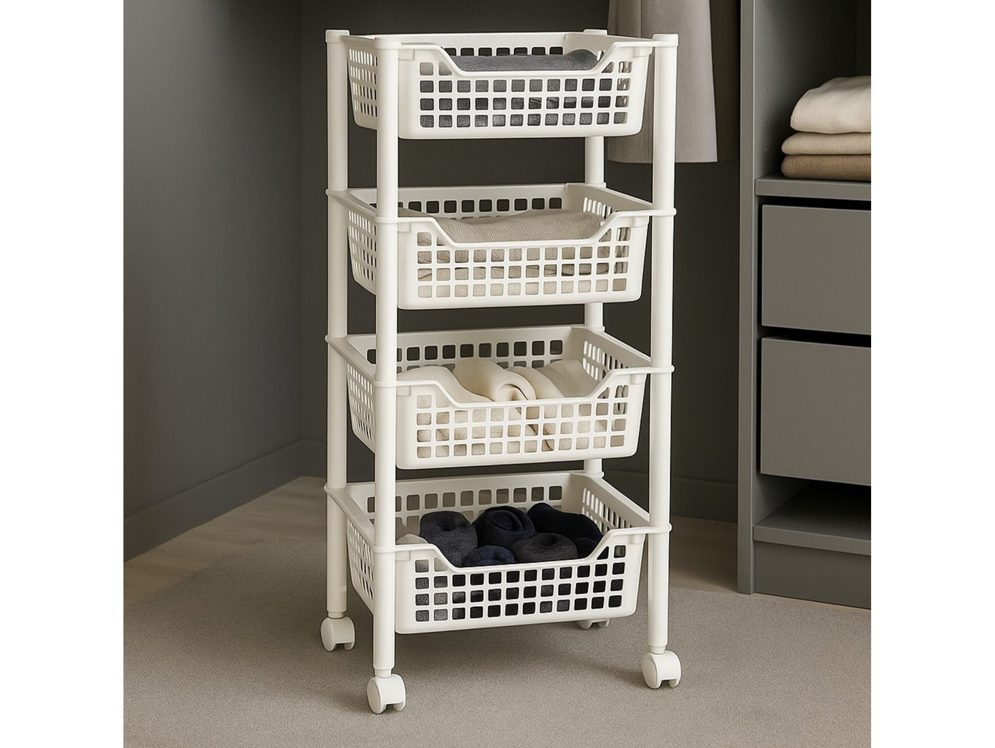 ✅ 4 głębokie kosze – doskonała wentylacja i widoczność zawartości, łatwe segregowanie produktów