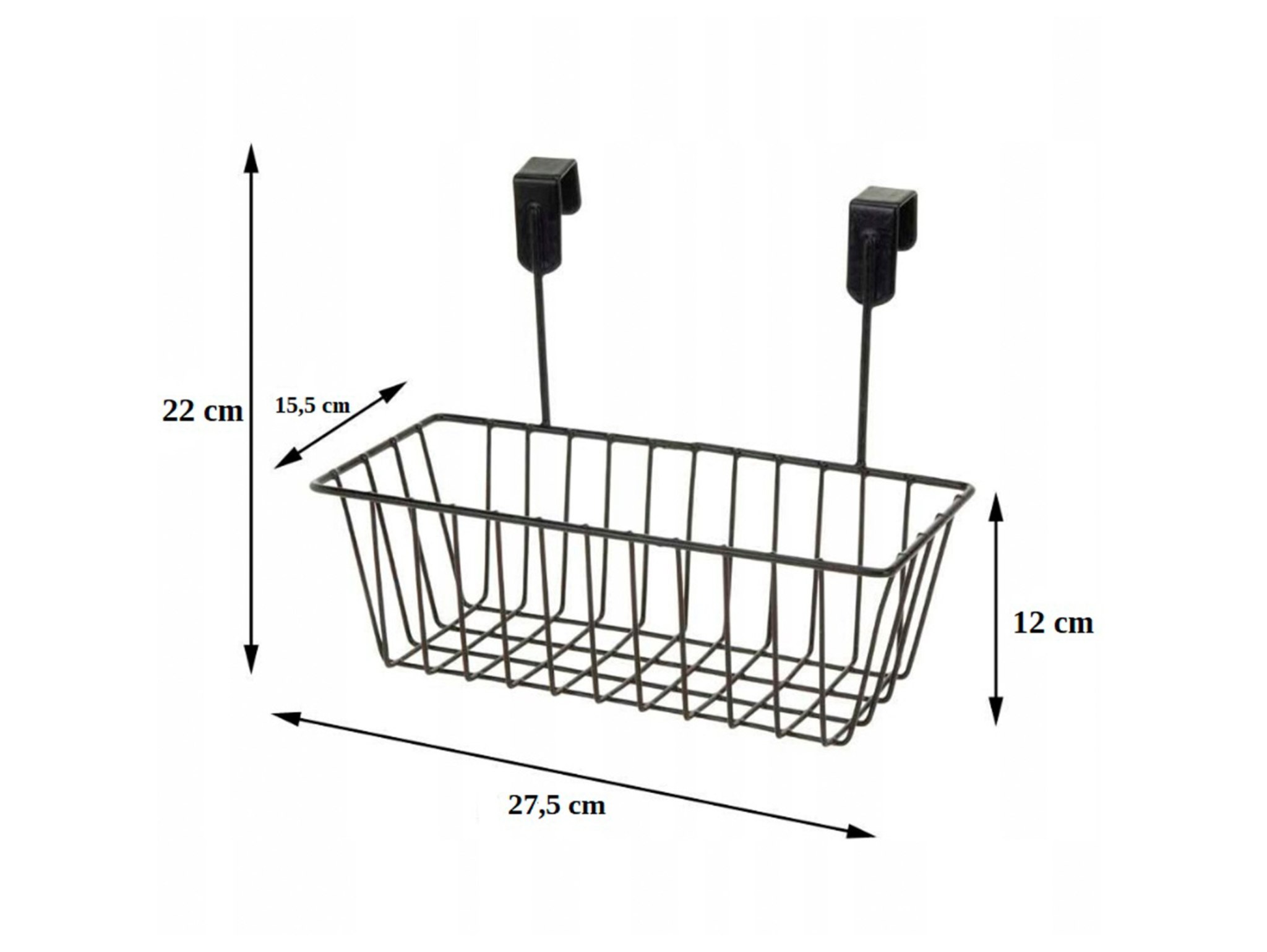 Zorganizuj przestrzeń w swojej kuchni, łazience czy biurze dzięki naszemu wiszącemu koszykowi do szafki. O wymiarach 27,5×15,5×12 cm, wykonany z wysokiej jakości metalu, ten elegancki koszyk w kolorze czarnym pomoże Ci utrzymać porządek i zaoszczędzić miejsce. Idealny do przechowywania drobnych przedmiotów, takich jak środki czystości, akcesoria biurowe, kosmetyki czy przybory kuchenne.