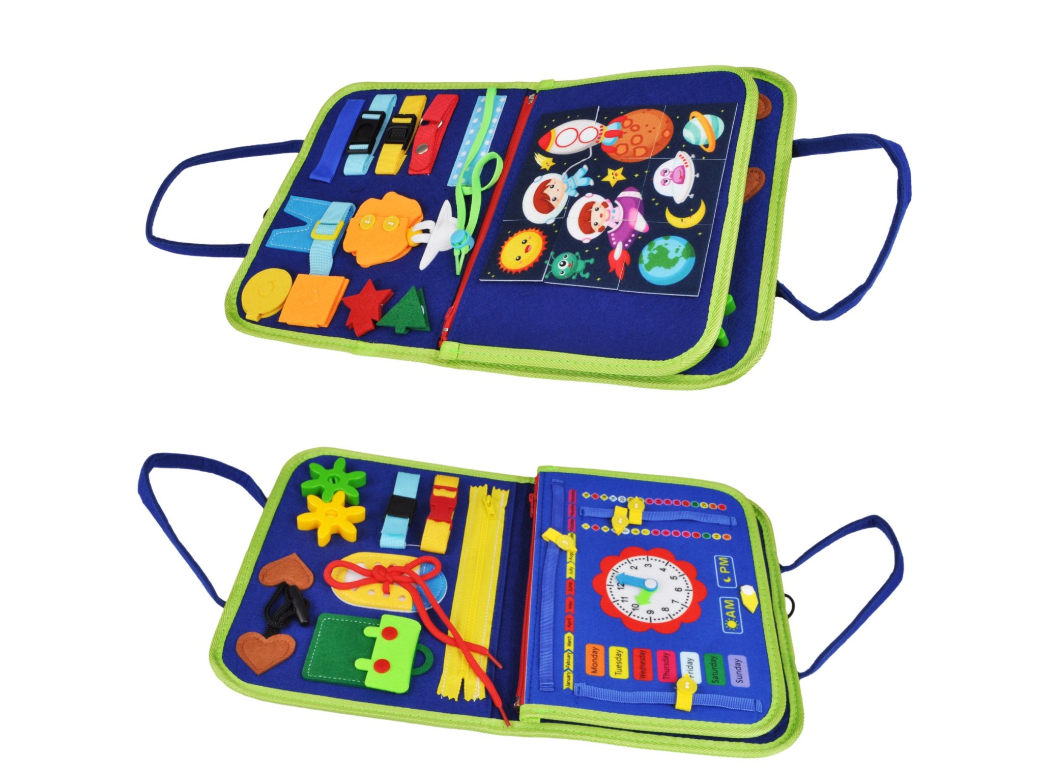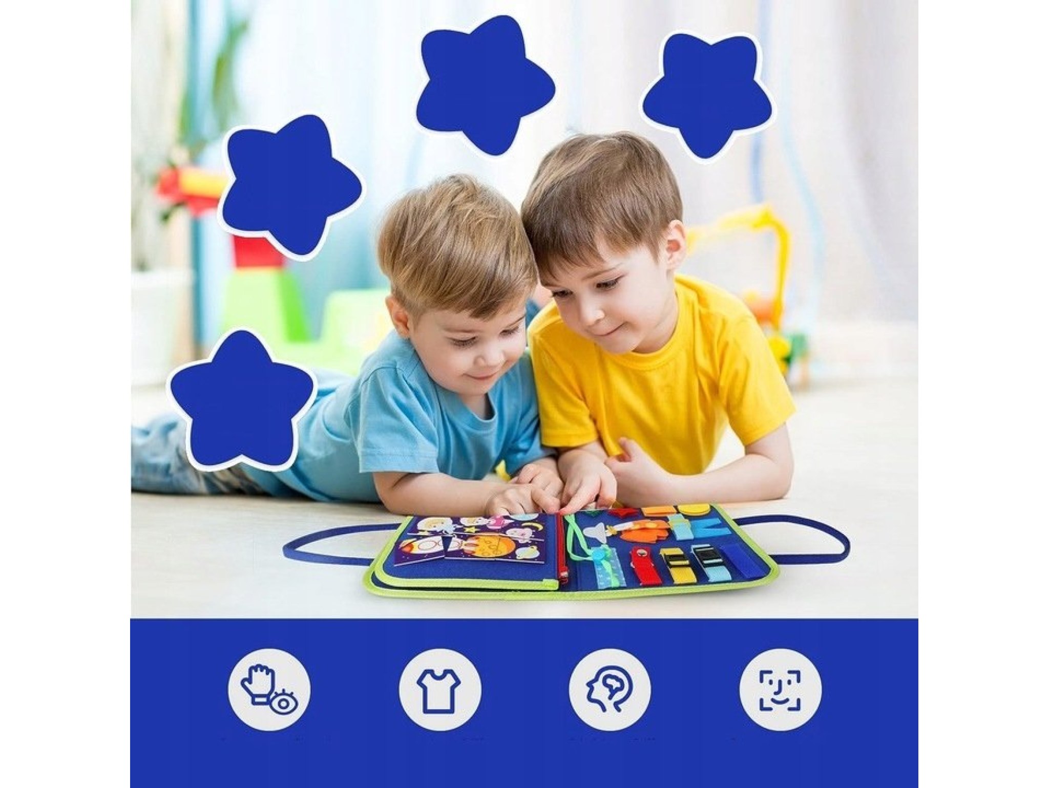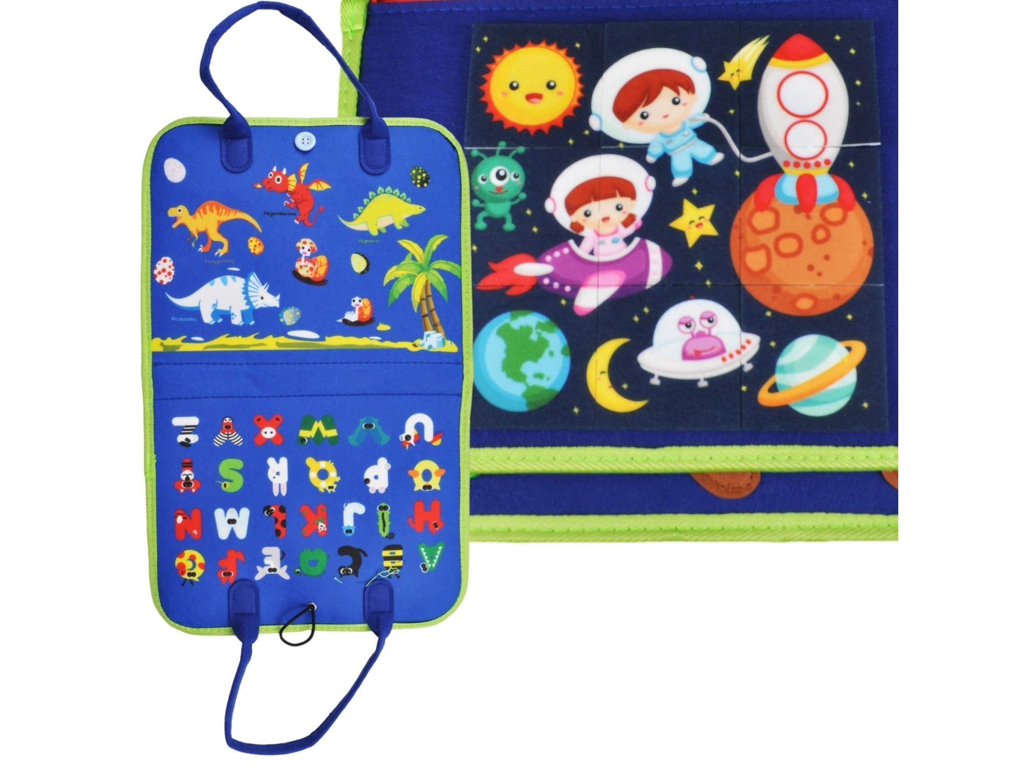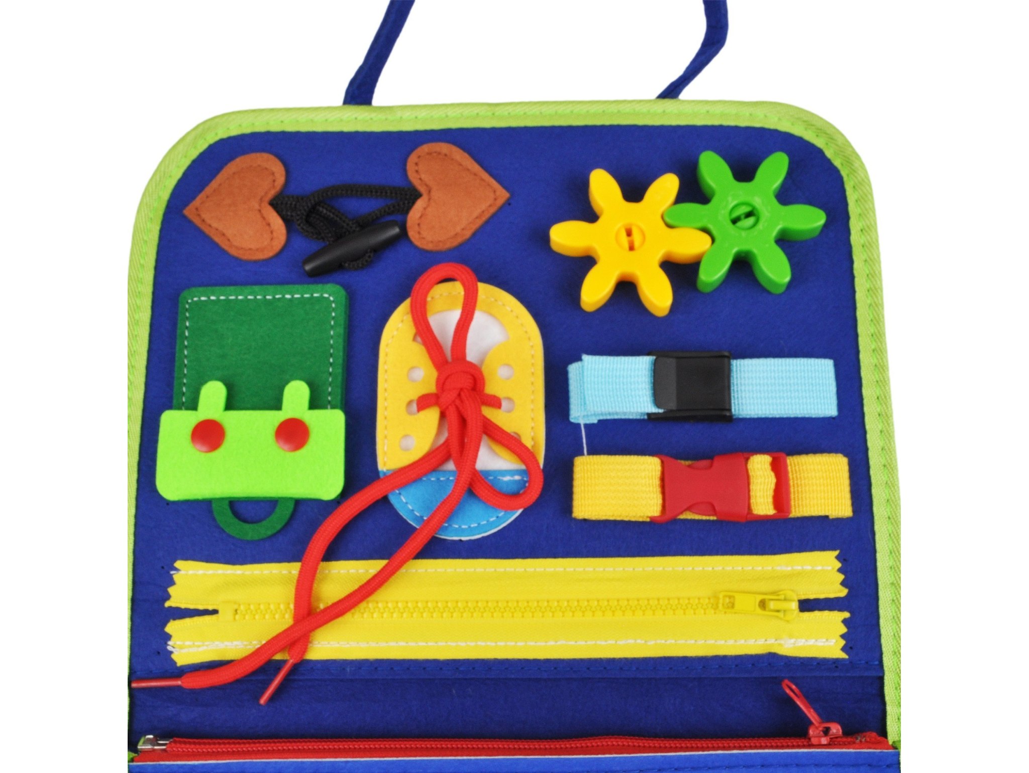 Co ją wyróżnia? Tablica ma formę filcowej książeczki, co czyni ją wyjątkowo praktyczną i poręczną. Idealnie sprawdzi się nie tylko w domu, ale również w podróży – zmieści się w plecaku, nie zajmuje dużo miejsca i zapewni dziecku długie chwile wartościowej zabawy np. w samochodzie czy samolocie. 🚗✈️