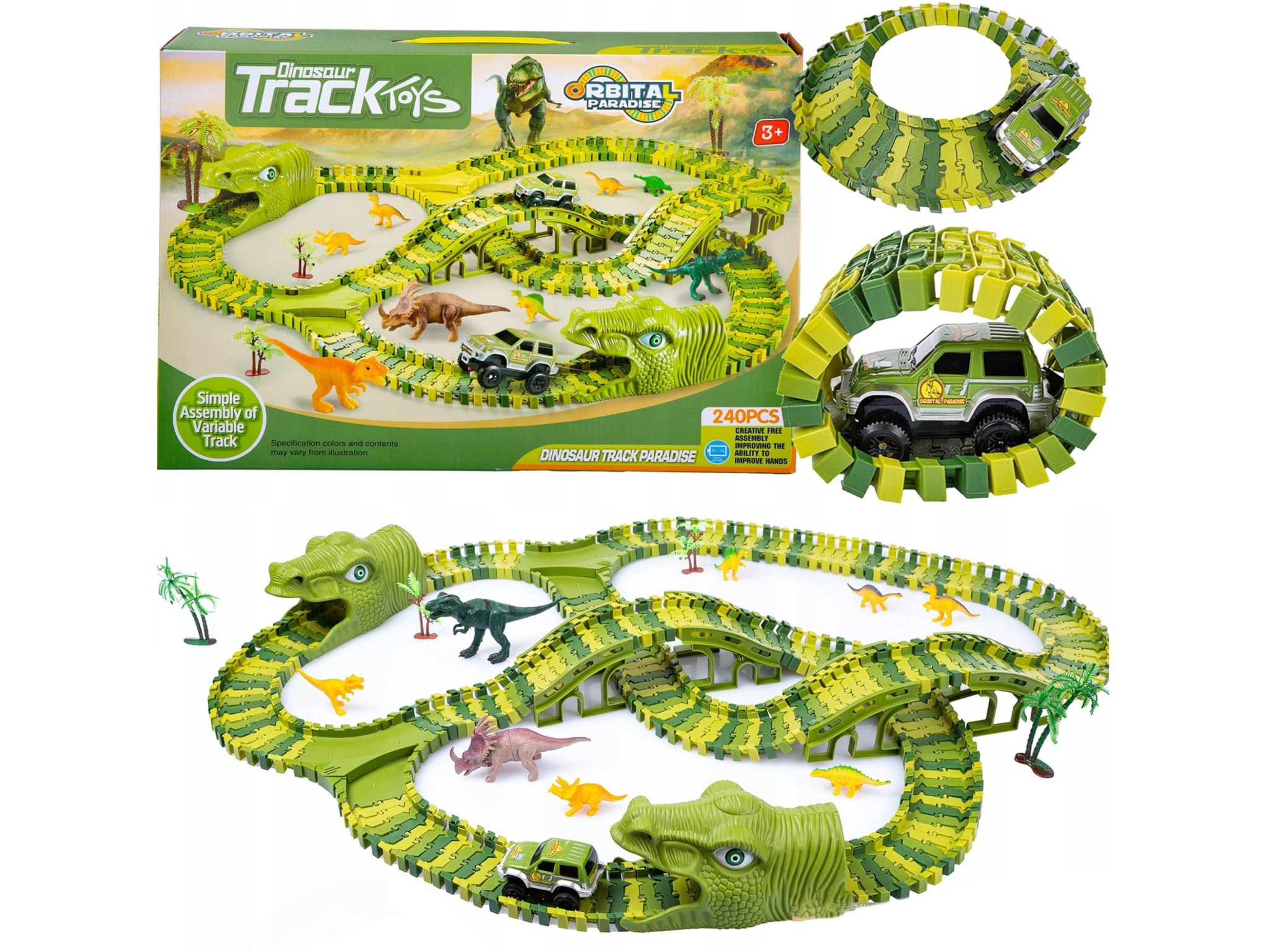 Tor wyścigowy z dinozaurami 240 elementów – prehistoryczna przygoda pełna emocji!