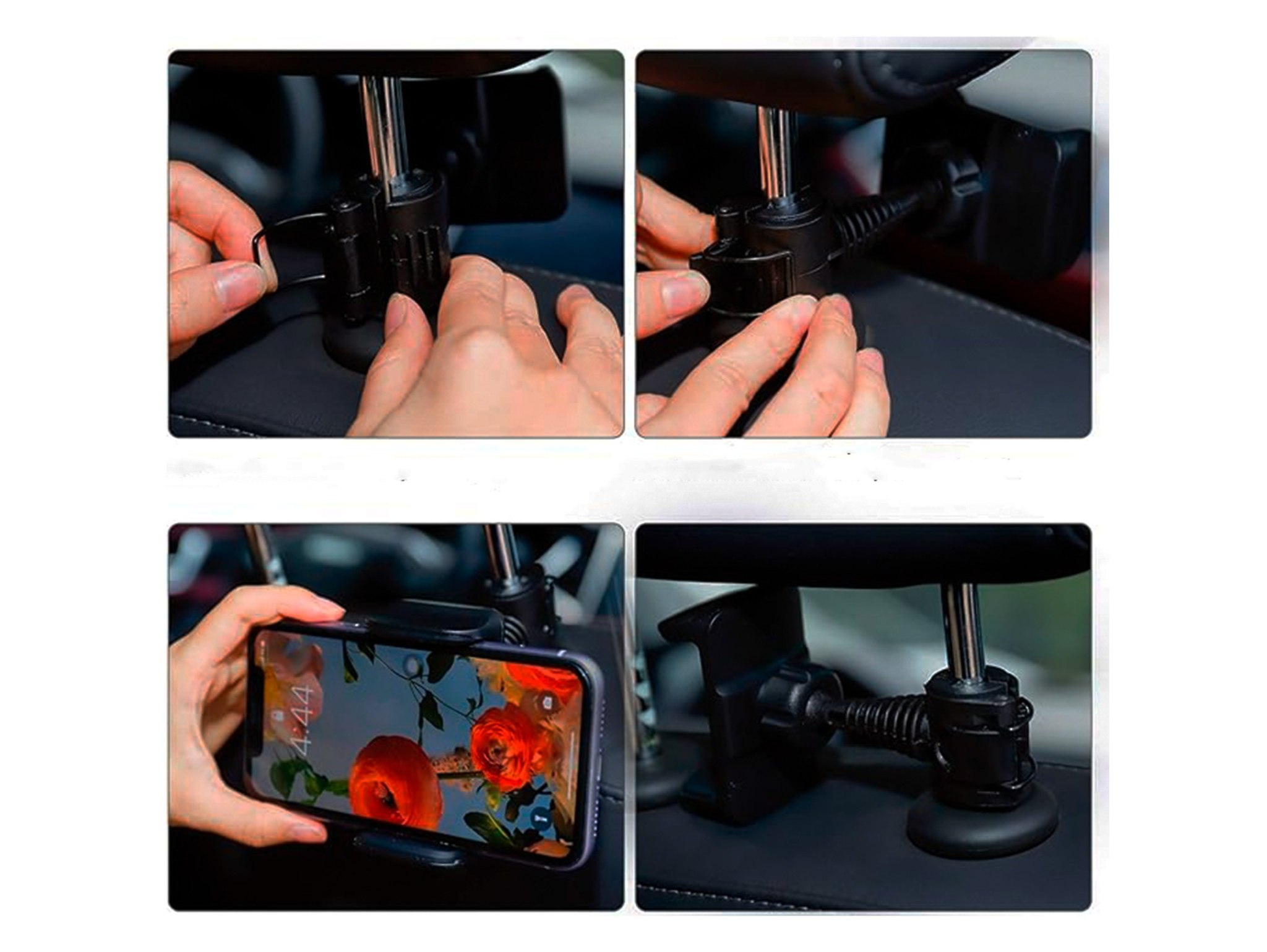 Konstrukcja umożliwia obrót o 360°, co pozwala ustawić ekran w dowolnej pozycji – pionowej lub poziomej, w zależności od potrzeb. Wykonany z trwałych materiałów uchwyt jest mocny, stabilny i odporny na intensywne użytkowanie, a jego montaż jest szybki i prosty. To niezbędny gadżet dla rodzin z dziećmi oraz osób często podróżujących, które chcą korzystać z tabletu lub telefonu w wygodny sposób.