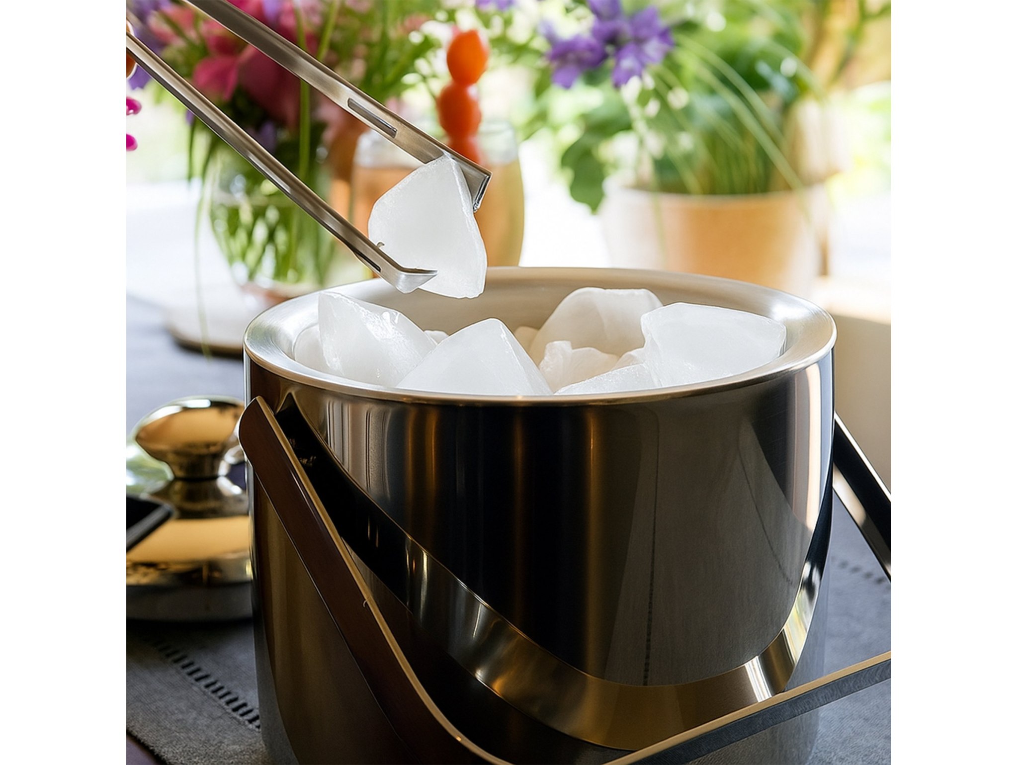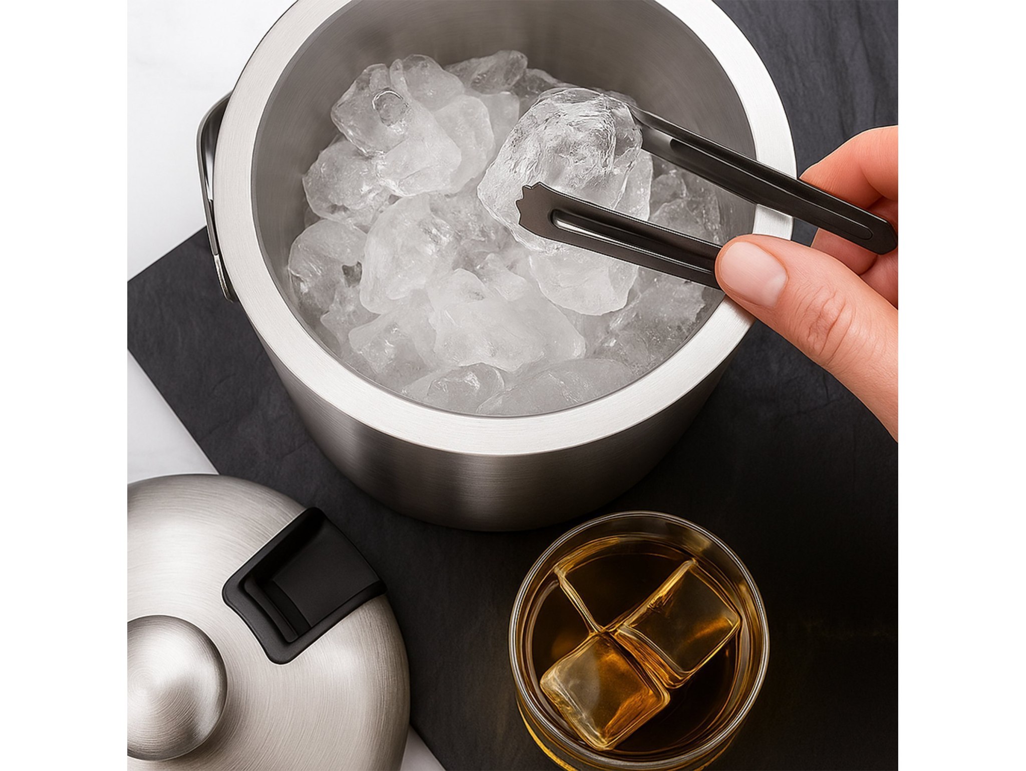 Zestaw zawiera wszystko, czego potrzebujesz: pokrywkę, sitko oraz stalowe szczypce, dzięki którym zachowasz higienę i estetykę podawania. Wiaderko zostało zaprojektowane z myślą o izolacji termicznej – lód topnieje powoli, a napoje długo pozostają schłodzone.