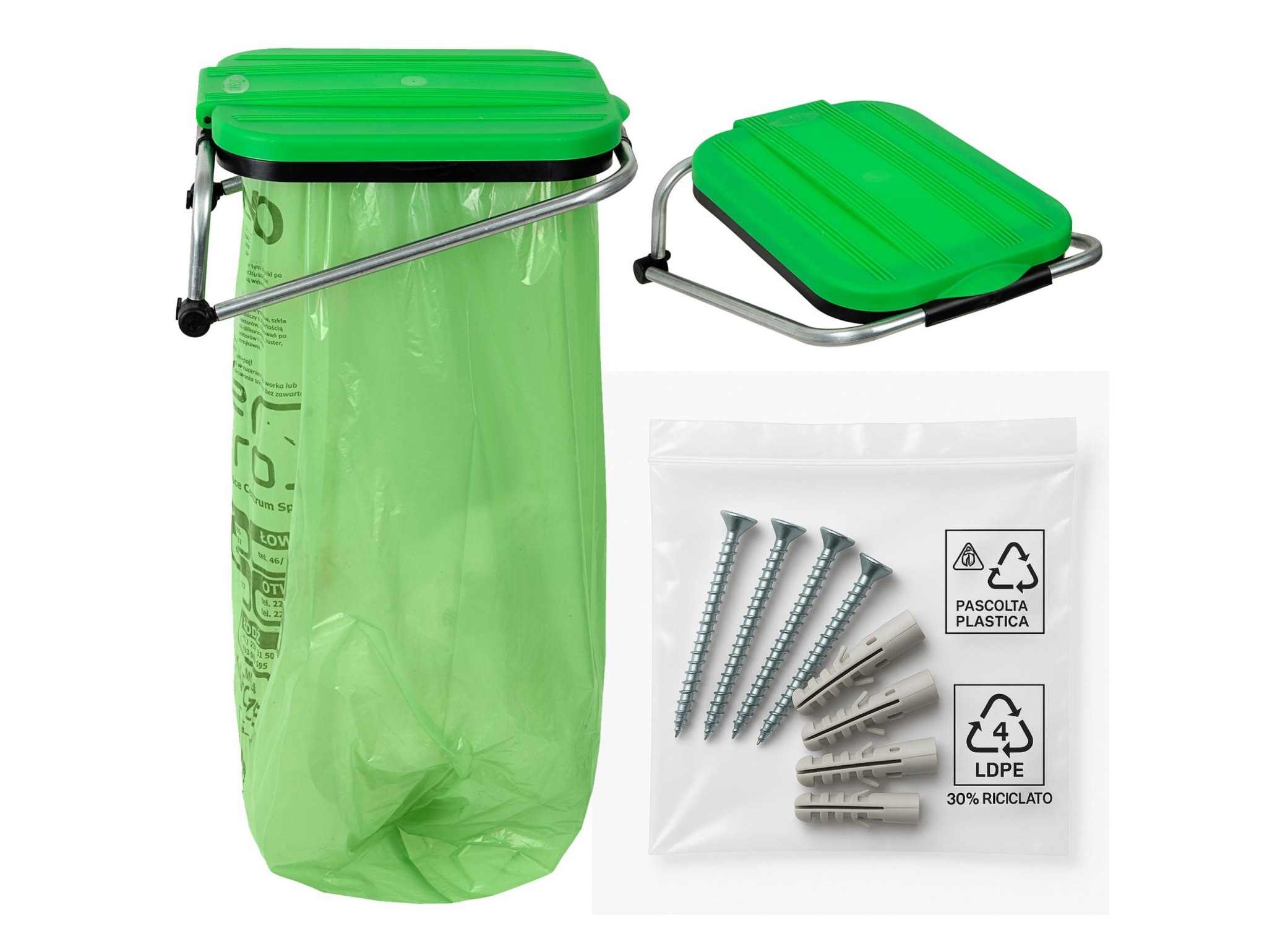 Wiszący ścienny uchwyt na worki do segregacji śmieci stelaż kosza na śmieci zielony