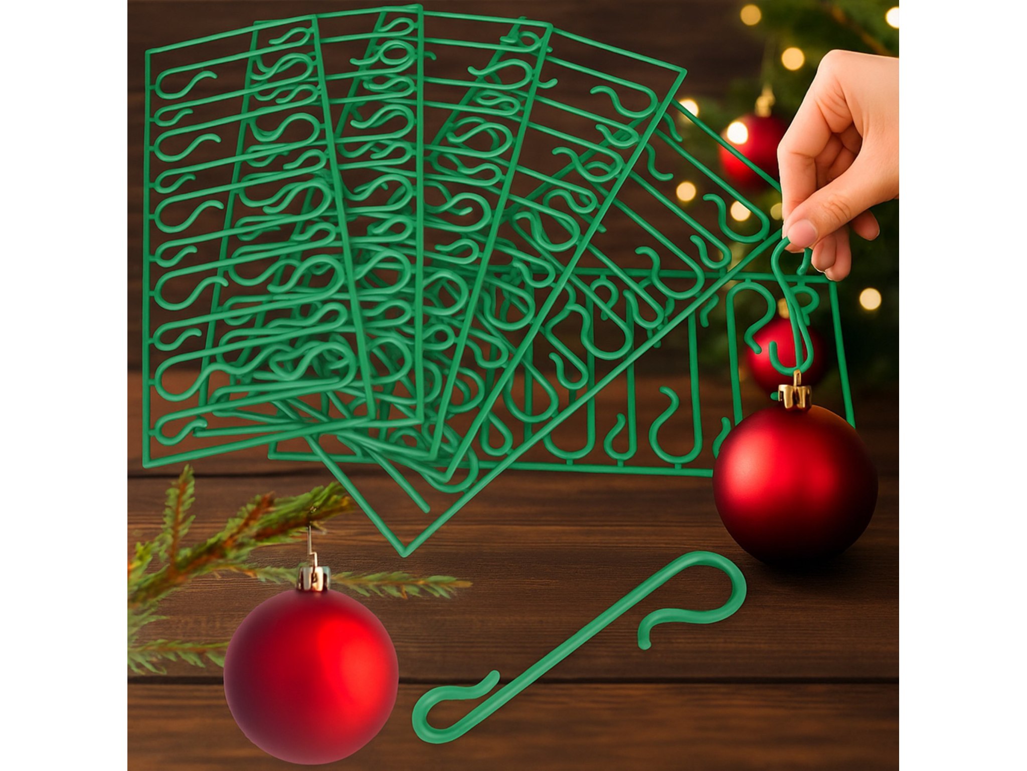 🌟 Kolor zielony – haczyki wtapiają się w zieleń choinki, nie odwracając uwagi od ozdób, dzięki czemu dekoracje wyglądają bardziej naturalnie.