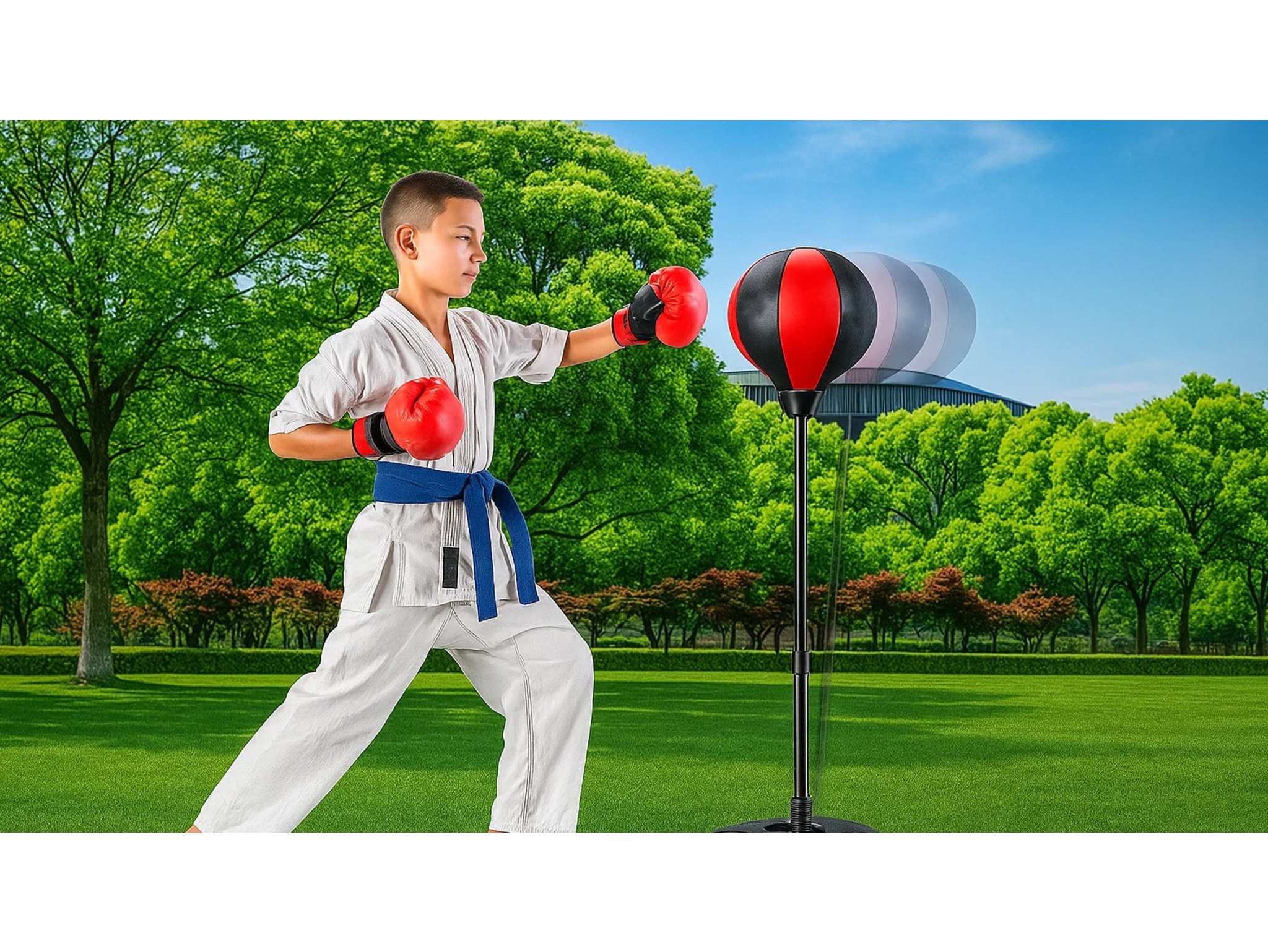 Chcesz, aby Twoje dziecko rozwijało siłę, refleks i pewność siebie w bezpieczny sposób? Ten zestaw bokserski dla dzieci to idealne połączenie zabawy i sportu! Stworzony z myślą o młodych pasjonatach aktywności fizycznej, pozwala rozpocząć przygodę z boksem w sposób przyjazny i motywujący. Dzięki regulowanej wysokości, stabilnej konstrukcji i wygodnym rękawicom, Twoje dziecko może trenować w domu, na sali gimnastycznej lub na świeżym powietrzu – wszędzie tam, gdzie ma ochotę się ruszać! 🥋