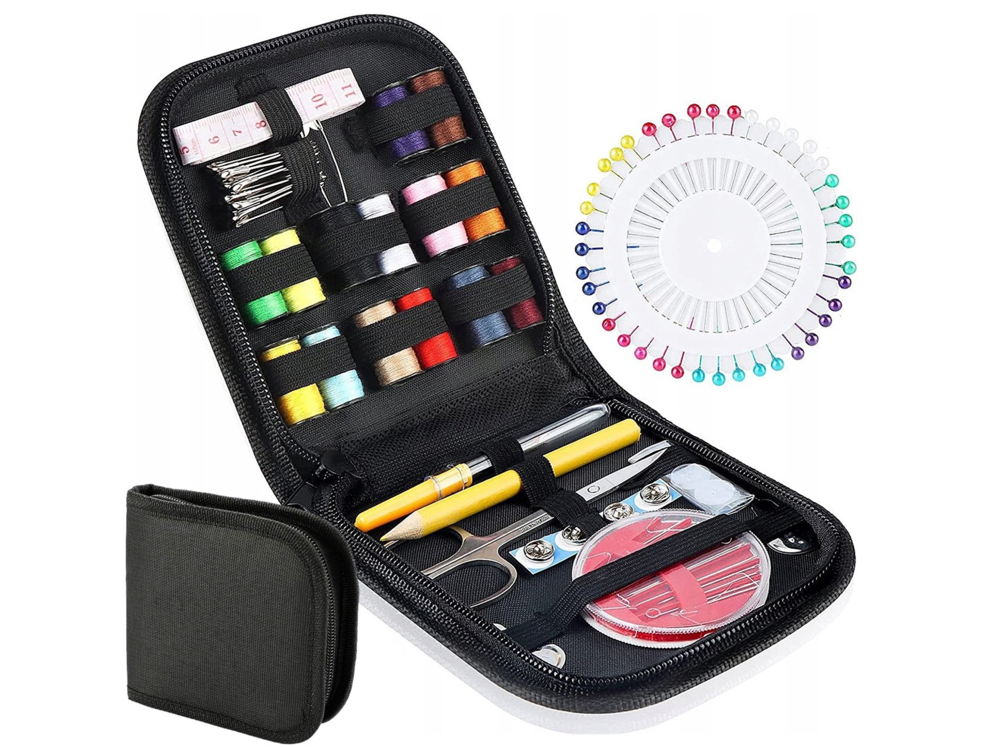 To praktyczne i wygodne rozwiązanie dla każdego, kto chce mieć wszystkie niezbędne przybory do szycia zawsze pod ręką. Zestaw sprawdzi się w domu, podczas podróży i w nagłych sytuacjach, umożliwiając szybkie naprawy ubrań i kreatywne projekty krawieckie.