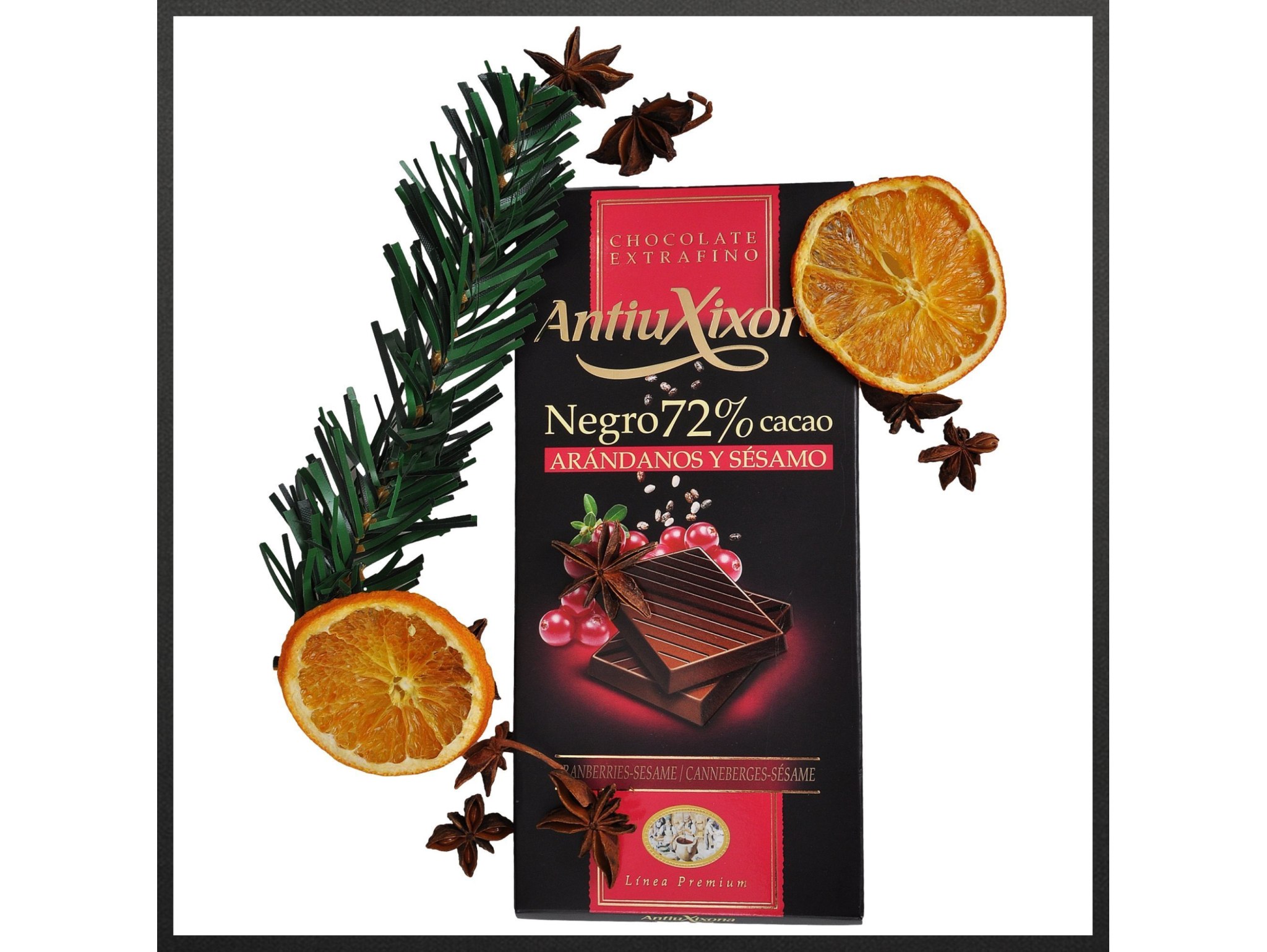 • Czekolada gorzka z żurawiną 100 g – intensywna, pełna smaku kakao i żurawiny.