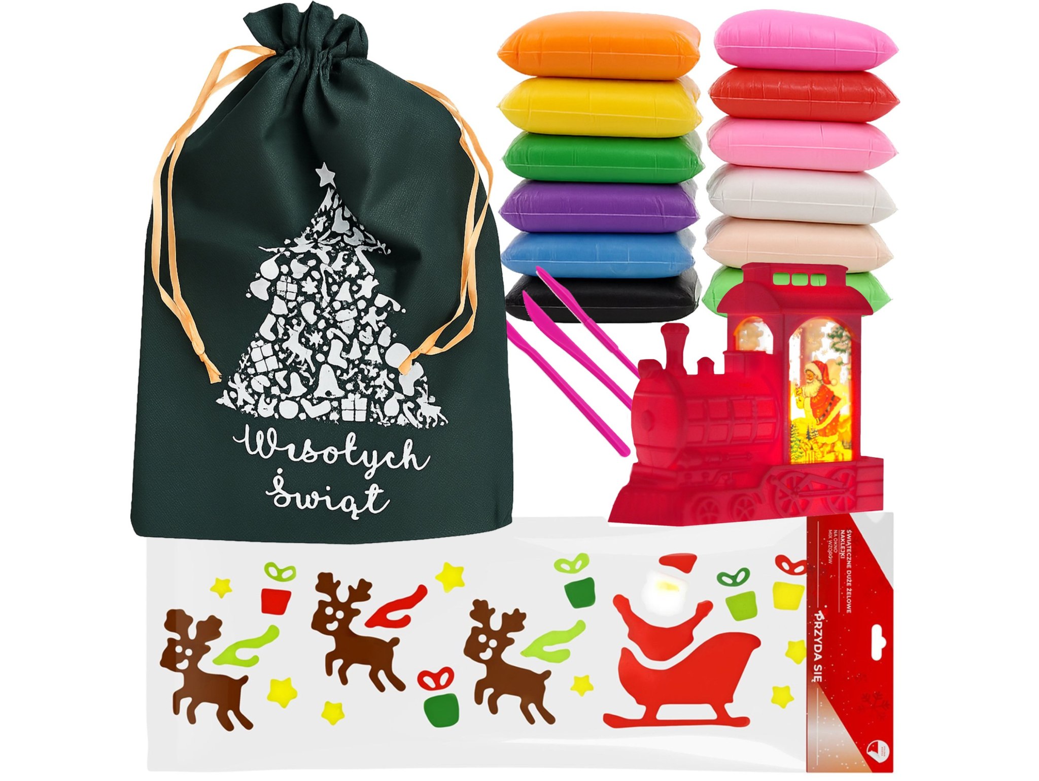 Podaruj w te Święta radość, kreatywność i magię bożonarodzeniowego klimatu! Ten zestaw świąteczny to idealny pomysł na prezent dla dziecka lub całej rodziny – łączy w sobie zabawę, dekorację i wyjątkowy nastrój. W jego skład wchodzą cztery niezwykłe elementy: piankolina kreatywna, świecąca lokomotywa LED, żelowe naklejki na szybę oraz worek prezentowy z motywem świątecznym. Wszystko razem tworzy gotowy upominek, który sprawi, że Święta staną się jeszcze piękniejsze!