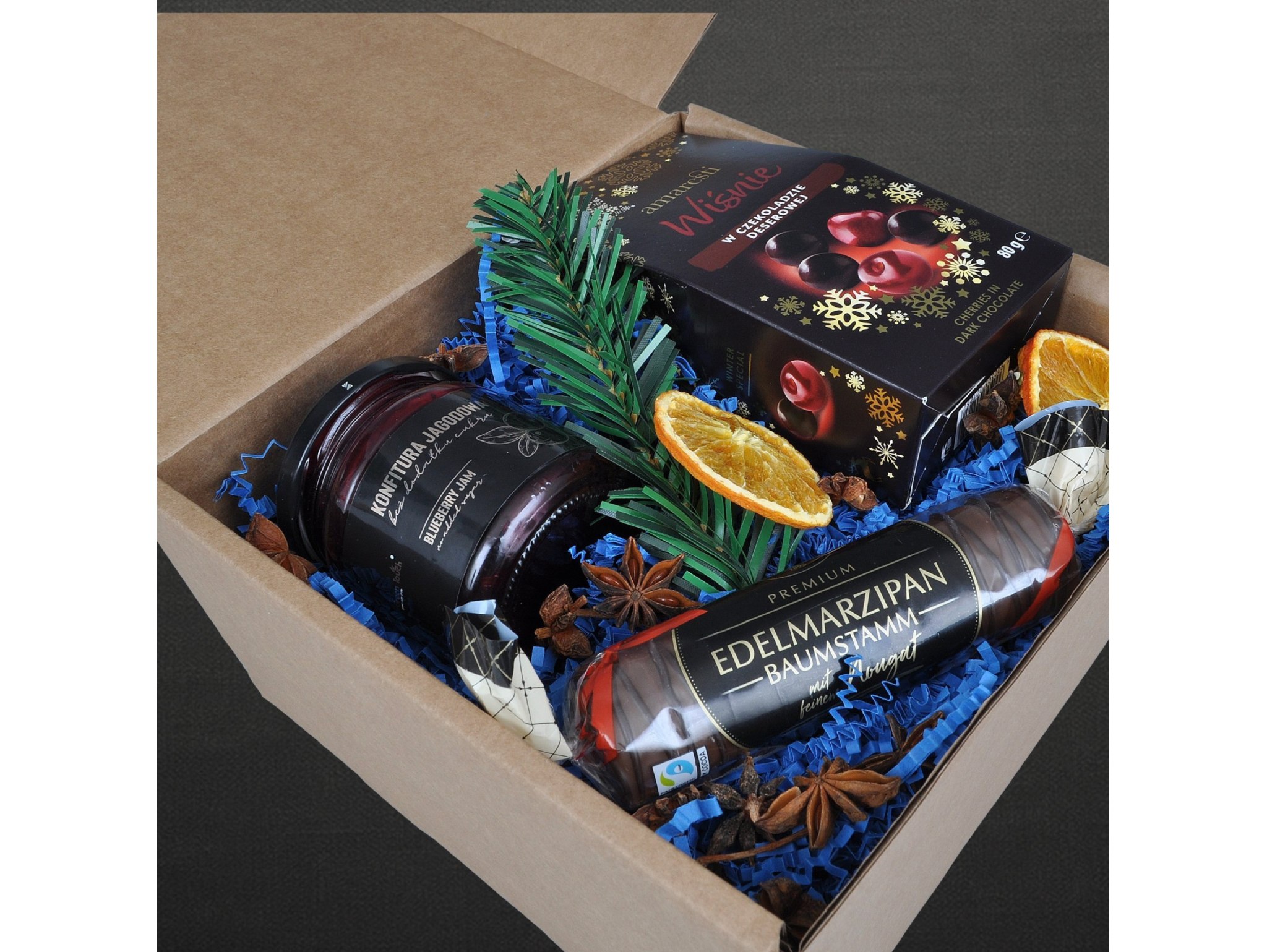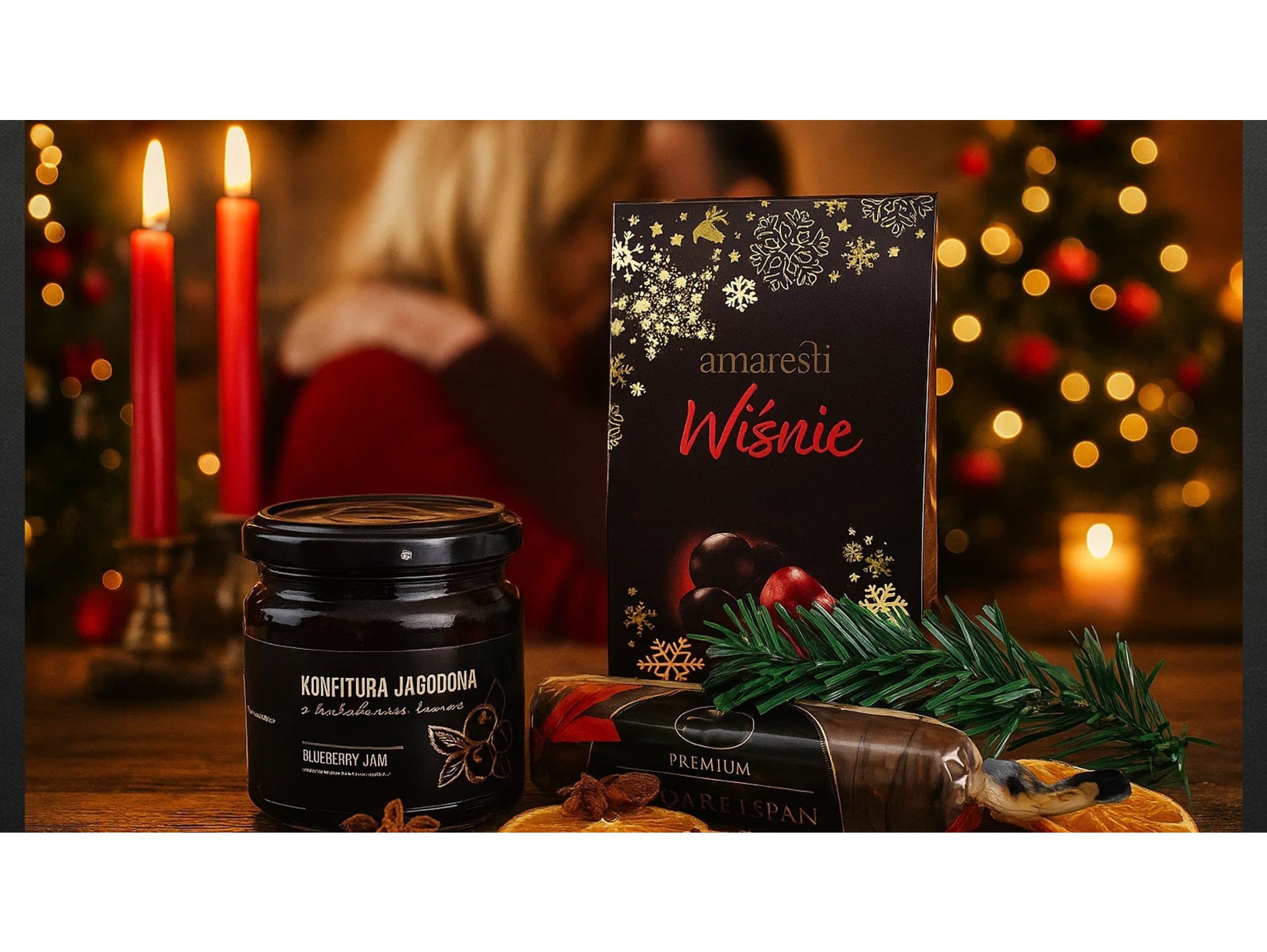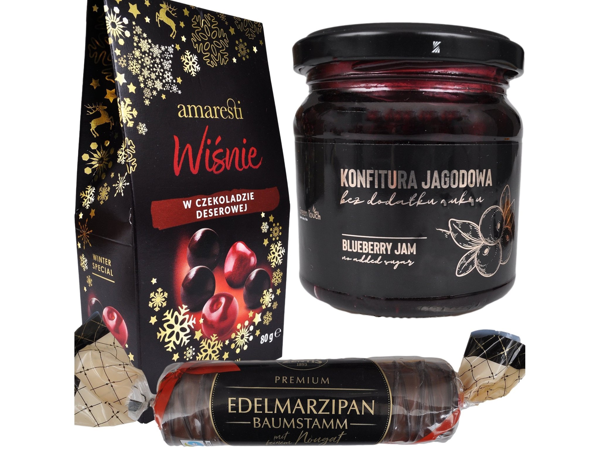 Zestaw świąteczny WIŚNIE • KONFITURA • MARCEPAN – elegancki prezent pełen smaków! 🎄🎁