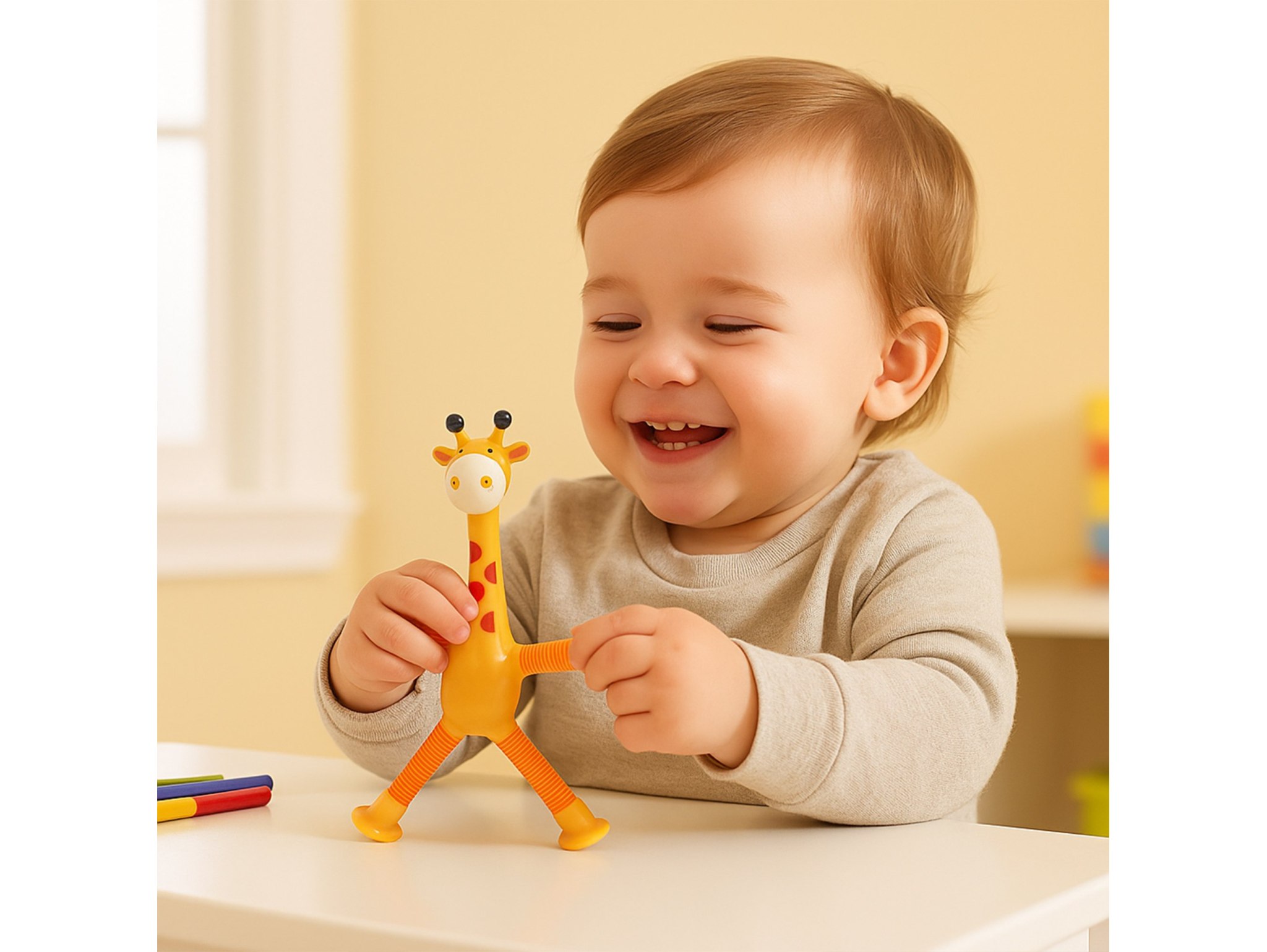 Żyrafka Sensoryczna – rozwój, radość i spokój w jednej zabawce! 🦒💛